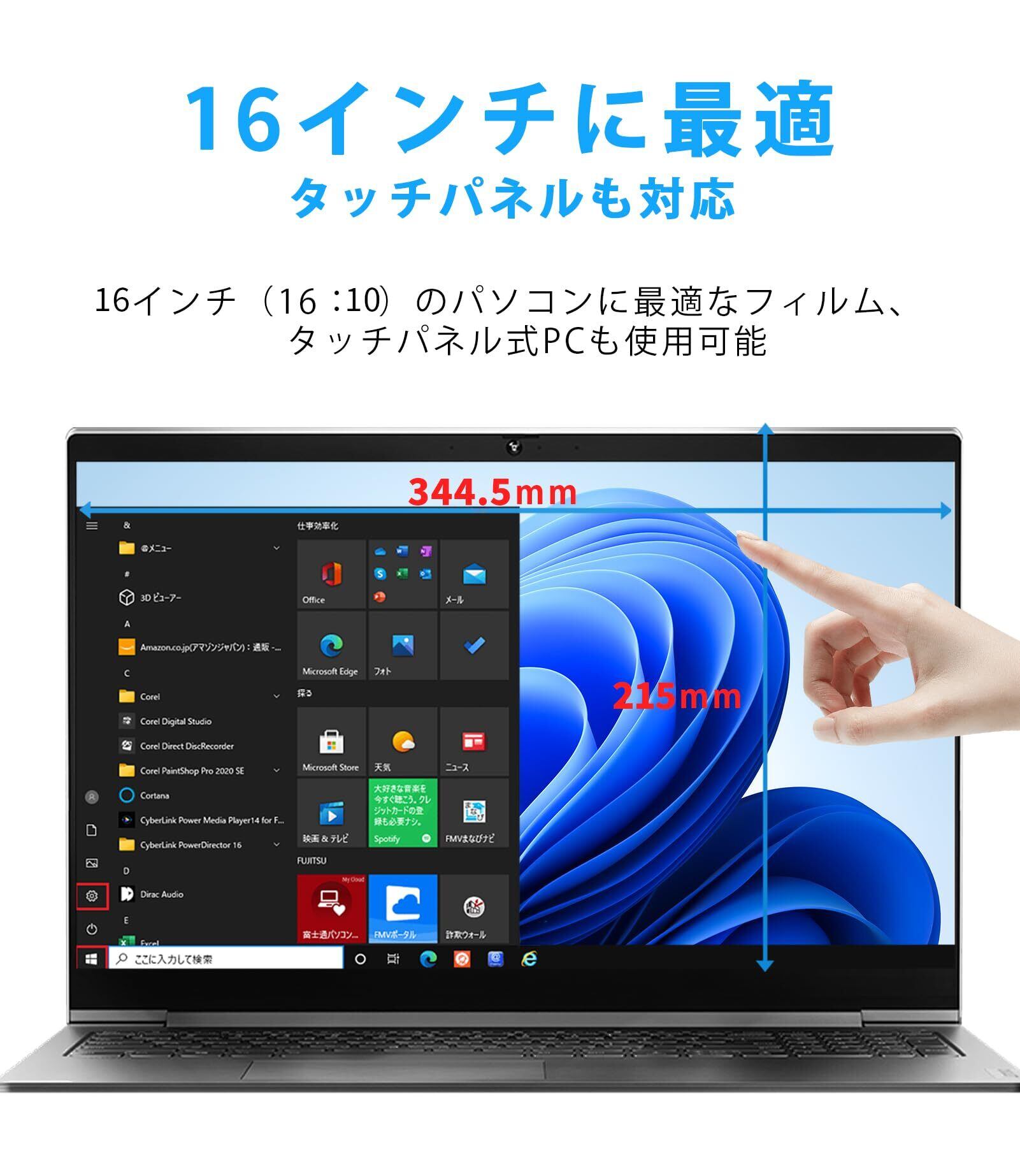 【特価商品】16インチ 用 液晶 保護フィルム パソコン ブルーライトカット フィルム 16:10 保護フィルム アンチグレア 反射防止 指紋防止 見やすく目に優しい フィルム