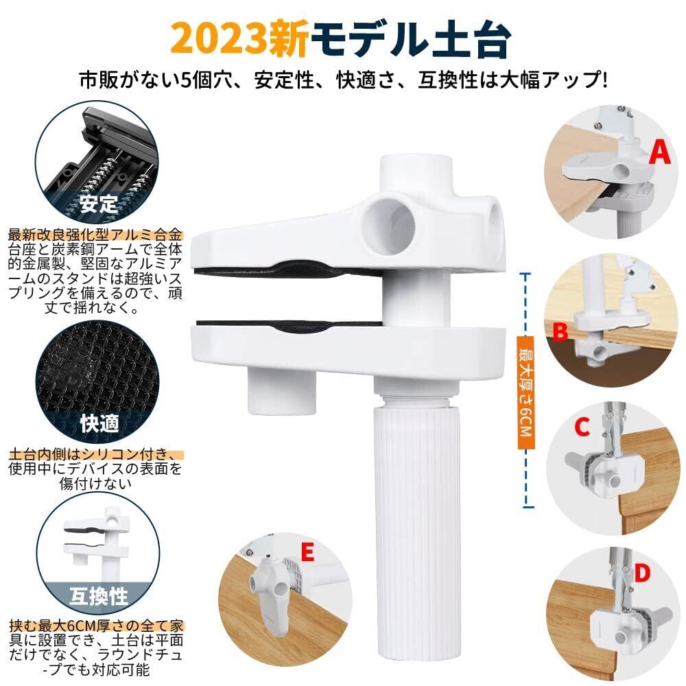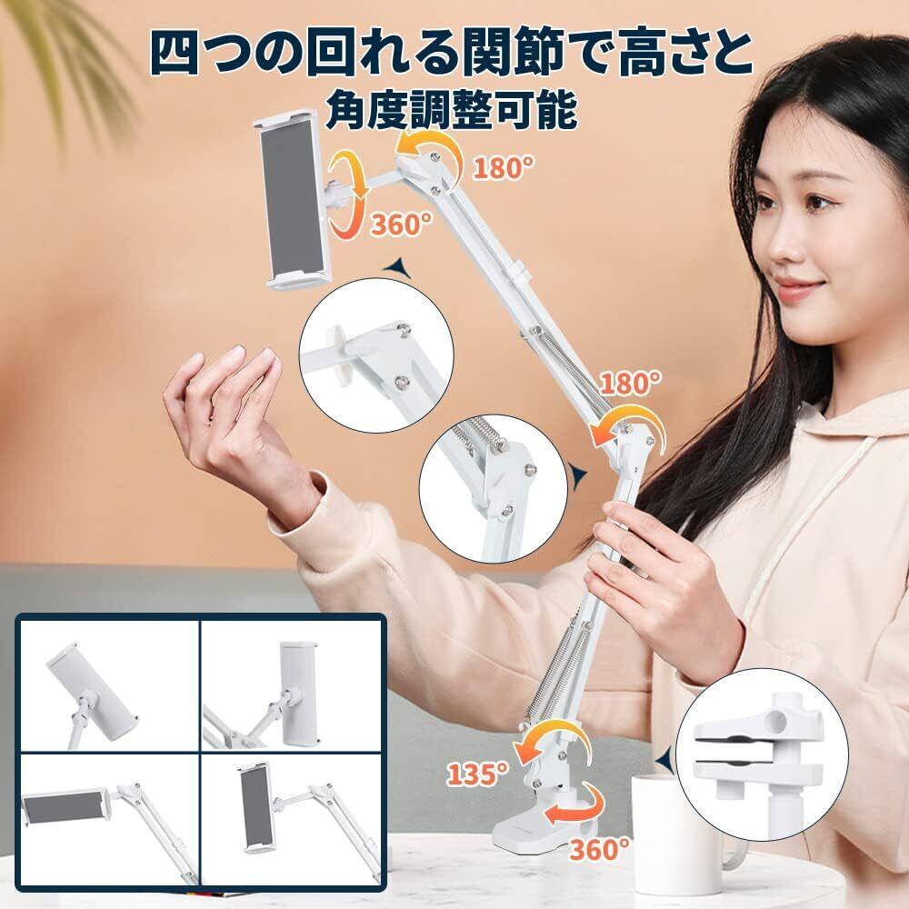 【新着商品】タブレットスタンド【2023最新型5穴土台&ケーブル固定具付き】寝ながら スマホスタンド 4つの関節 折り畳み式 自由角度調整 卓上スタンド 360°回転ホルダー 縦横両対応 4-12.9インチの iPad/iPhone/Surface/Galaxy/mini/Kindle/Switchに対応 (WHite)
