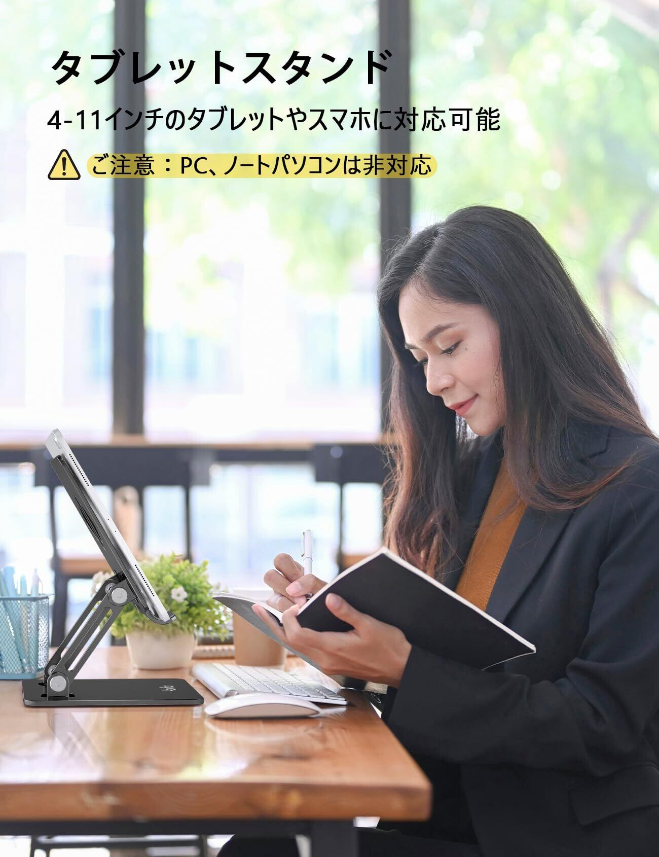 【在庫セール】Aoviho(アオビホ) タブレットスタンド ipadスタンド 折り畳み式 tablet stand 描きホルダー アイパッド アルミ製 持ち運び便利 高さ角度調整可能 卓上 液タブ 充電台 スマホ立て 縦置き 横置き テレワーク ネットワーク会議 ipad air/pro/mini/Kindle/switchなど4-11インチに対応 (黒 ブラック)