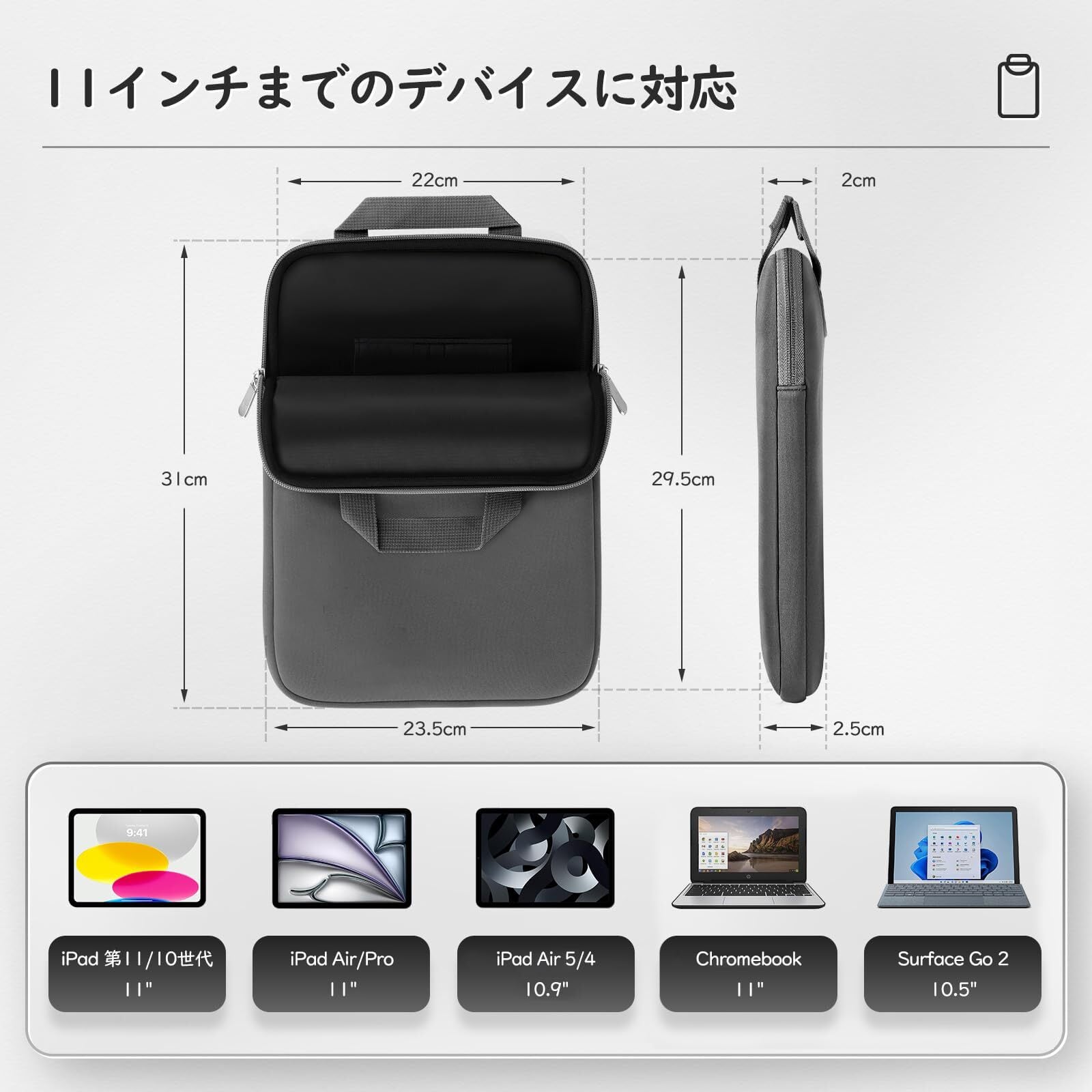 【人気商品】タブレットケース 小学生 ATiC ノートパソコン収納バッグ クロームブックケース ランドセルに入る iPad Air/Pro 11インチ/iPad 11世代/iPad 10世代/iPad Air5&4/Fire HD10/iPad 10.2/Surface Go/Chromebook 11インチなど対応 ノートパソコン/タブレット/電子書籍リーダー収納 ネオプレン製 手提仕様 Gray