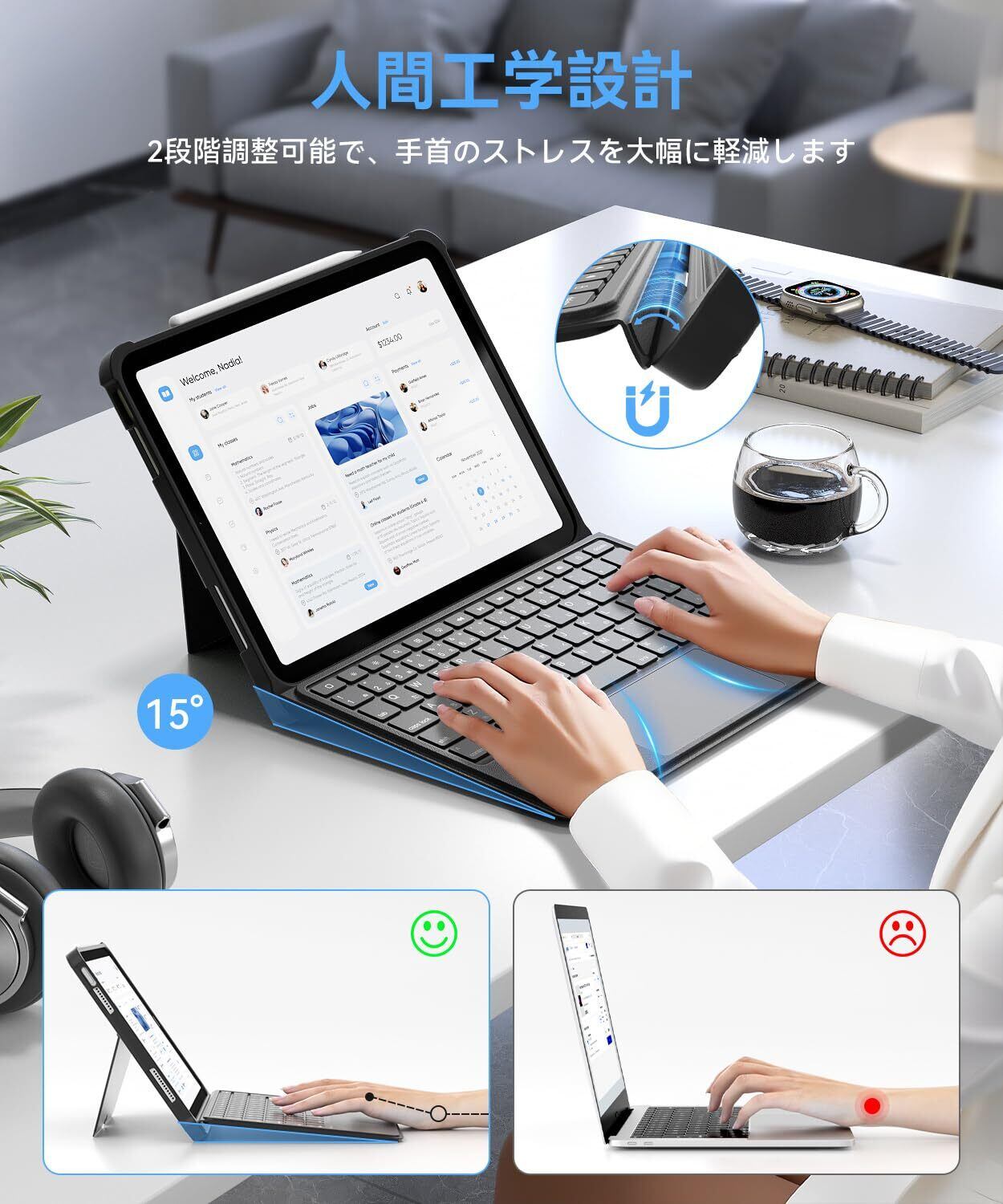 【在庫セール】【業界革新版】Omikamo iPad A16 第11世代/第10世代用 人間工学JIS日本語配列キーボードケース タイピング角度調整可能 ipad a16 ケース キーボード付き 超高精度トラックパッド搭載 無階段調整スタンド付き ペン収納 全面保護 耐衝撃 静音キー 横/縦置き 脱着式 省エネ Type-C充電式 11インチ/10.9インチ 日本語取扱説明書付き
