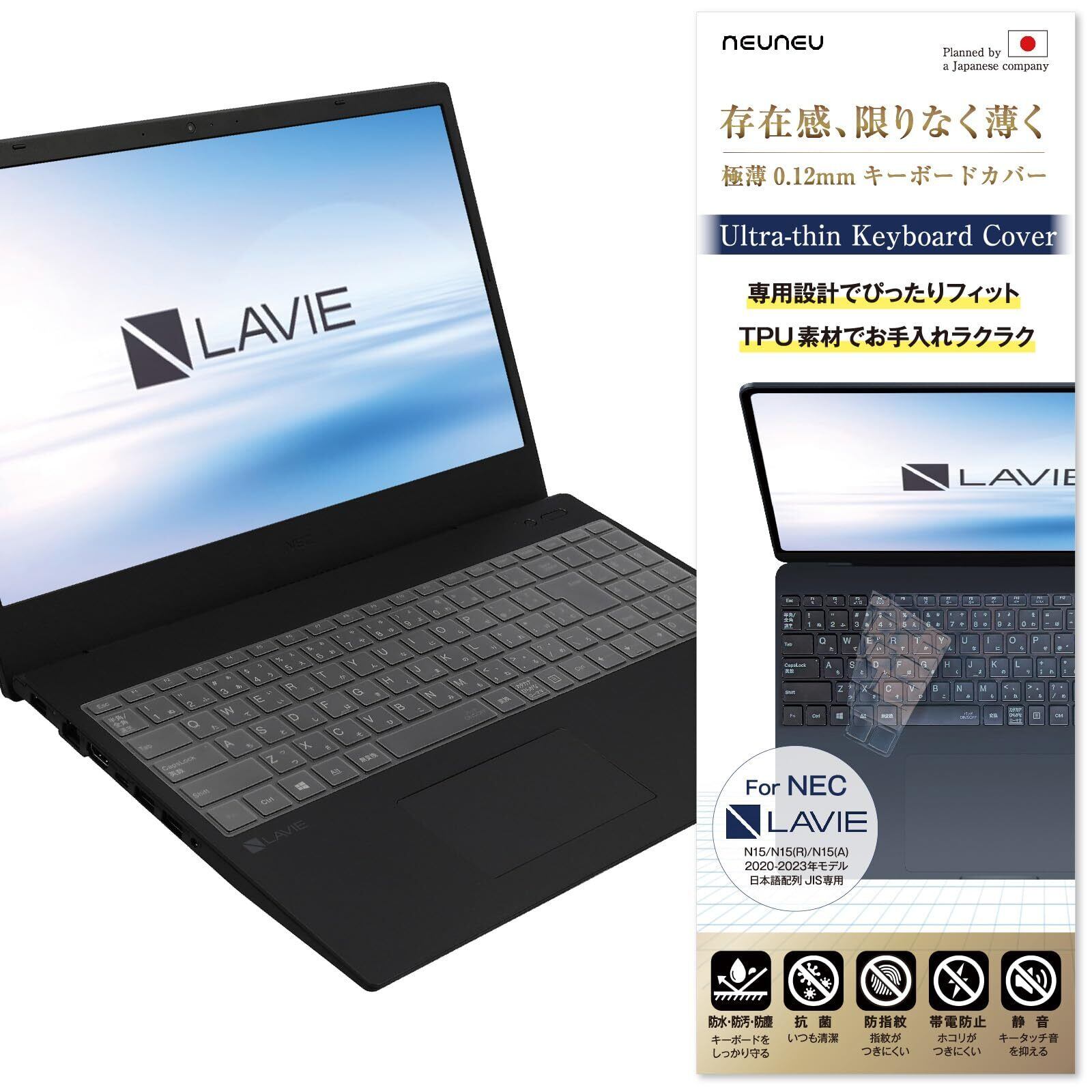 【2022最新】neuneu【極薄0.12mm】 NEC LAVIE Direct N15 N15(R) N15(A) 専用設計 キーボードカバー 完全防水 TPU