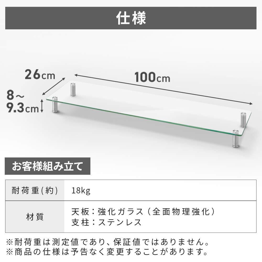 【新着商品】アイリスオーヤマ デスクがスッキリするモニター台 幅100cm ガラスタイプ 収納領域の大きなワイド設計 目線が上がるので首肩の負担が軽減 インテリアになじむシンプルデザイン ほこりが溜まりにくいフラット設計 モニター台 パソコン台 ディスプレイ台 机上台 PC台 プリンタ台 キーボード マウス収納 幅約100×奥行約26×高さ約8~9.3cm MNS-1000G