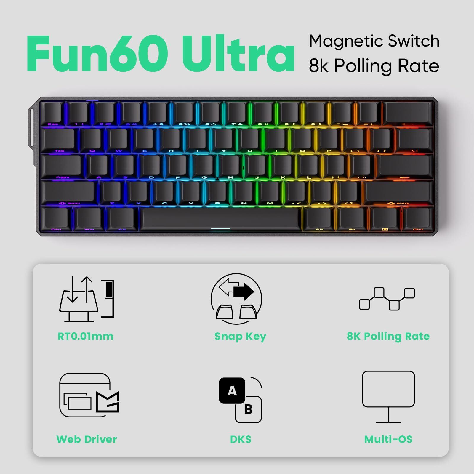 【人気商品】【国内正規品】MonsGeek(モンスギーク) FUN60 Ultra SP 有線モデル HEセンサー アルミボディ 0.01mm ラピッドトリガー対応 磁気スイッチ Akko Glare Magnetic Switch 英語配列 テンキーレス サイドプリント 有線8K ホットスワップ SnapKeys (SOCD)対応 ARGB対応 高コスパ ゲーミングキーボード Black