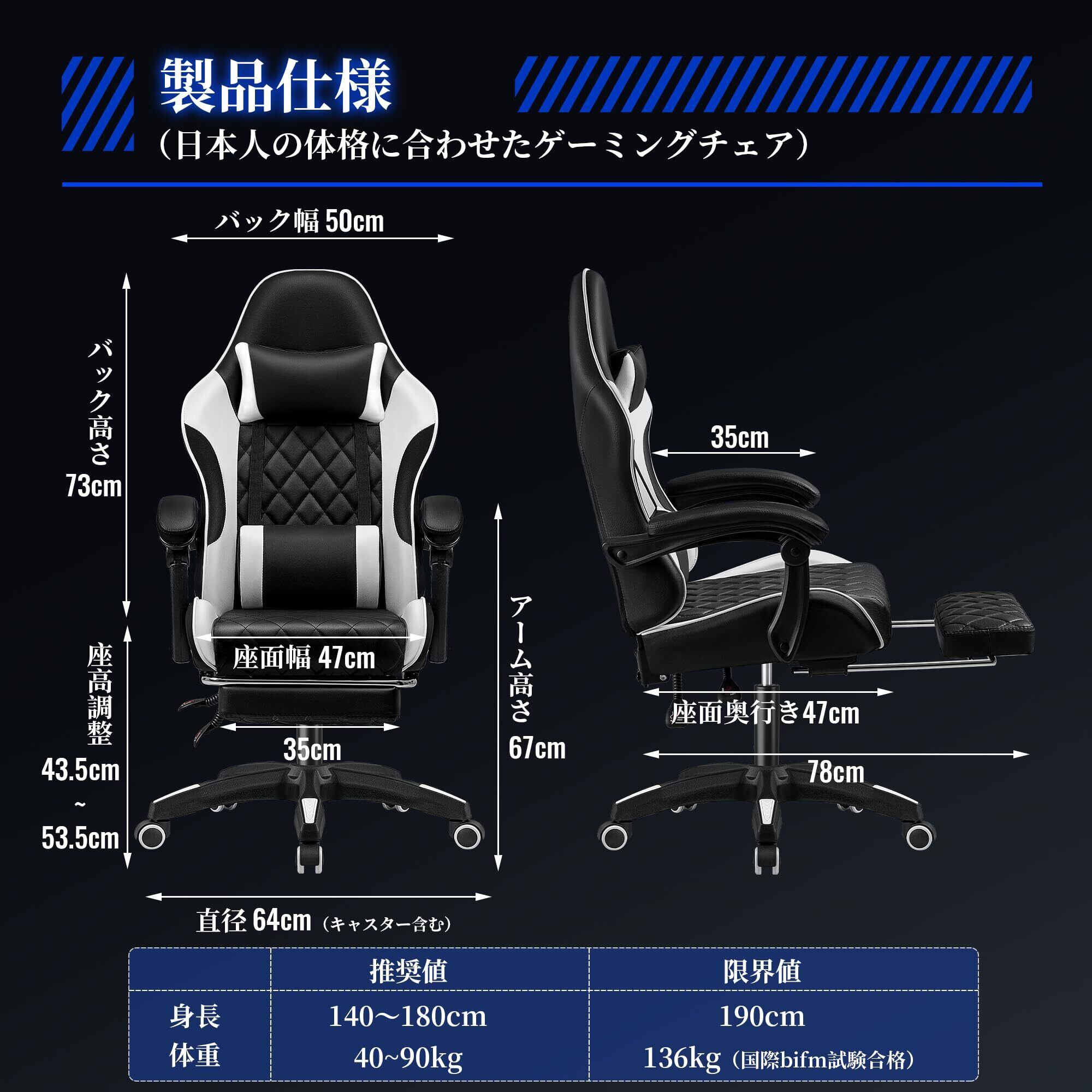 【2022最新】VICTONE ゲーミングチェア 連動式アームレスト オットマン付き ゲーム用チェア PCチェア リクライニングチェア オフィスチェア 改良座面 座り心地よい イス 椅子 テレワーク 疲れない (ホワイト,オットマンあり) | KURASHILABO