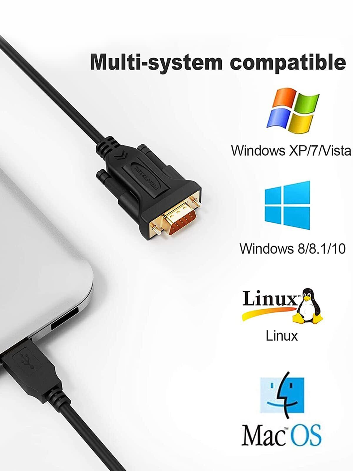 【高速データ転送】このUSB 2.0からRS232オスDB9シリアルケーブル経由で、モデムのようなシリアルDB9(9ピン)デバイスをコンピュータに搭載したUSBポートに接続します。Windows標準COMポート、完全なRS232のモデム制御信号、RS232データ信号としてインストールされています。TxD、RxD、RTS、CTS、DSR、DTR、DCD、RI、GND。