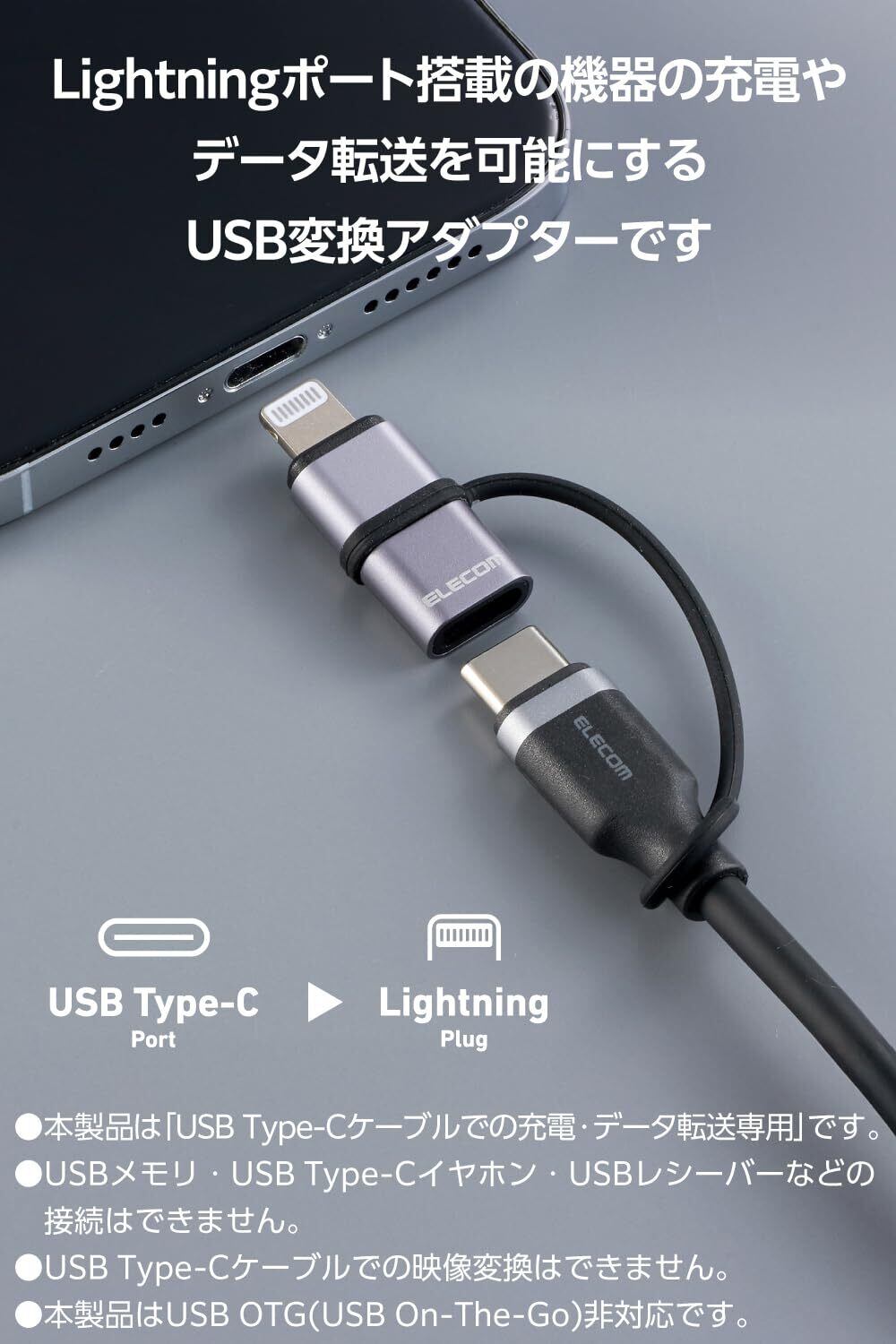 ■USB Type-C(TM)プラグをLightningプラグに変換するアダプターです。お手持ちのUSB Type-CケーブルでLightningポート搭載端末の充電やデータ転送を可能にします。