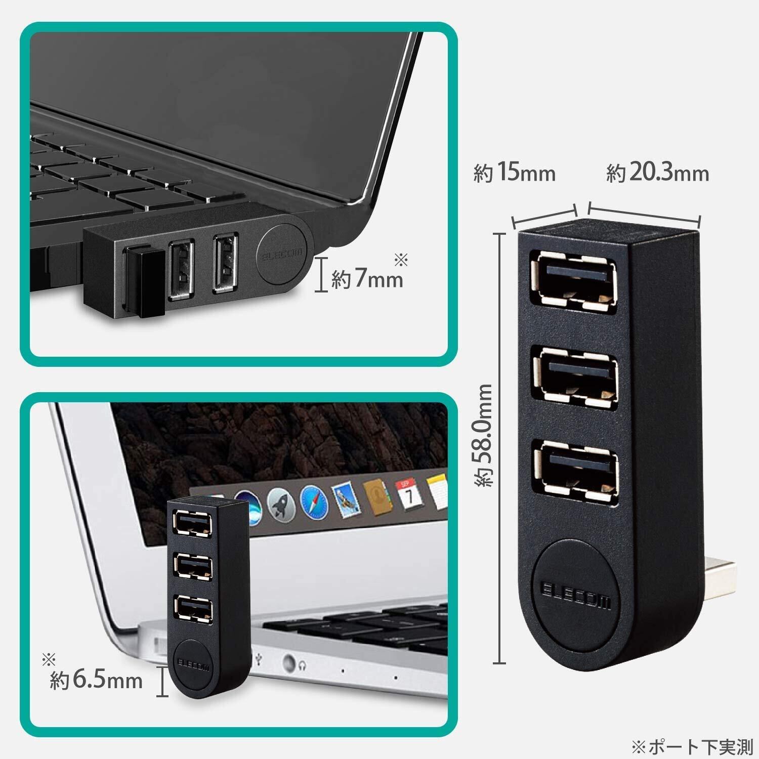 【在庫処分】エレコム USBハブ 2.0 バスパワー 3ポート 直挿し 機能主義 MacBook/Surface Pro/Chromebook他 ノートPC Nintendo Switch対応 ブラック U2H-TZ325BXBK | KURASHILABO