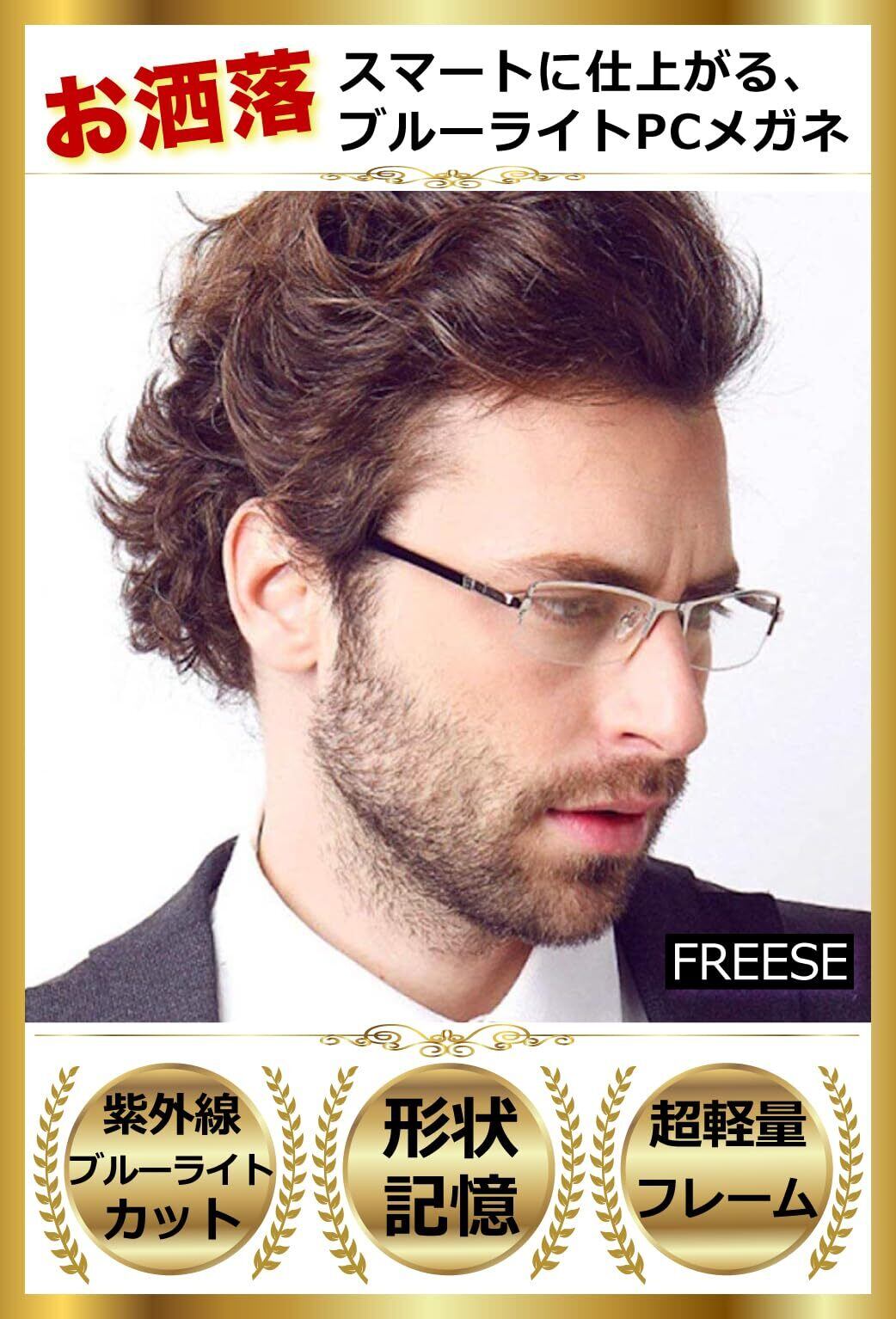 【数量限定】[FREESE] ブルーライトカットメガネ メンズ 超軽量 形状記憶フレーム ハーフリム | KURASHILABO