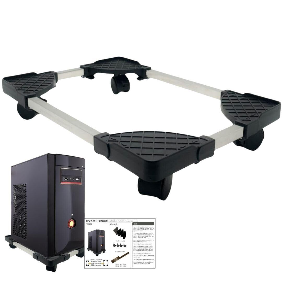 【新着商品】組立簡単 CPUスタンド 【monoマガジン掲載】 デスクトップ pc 置き台 PCキャスター キャスター付き台車 サイズ調整 無段階調節 ストッパー4か所 熱対策 オフィス デスク ワーク ブラック ホワイト mugenbo (ブラック) | KURASHILABO