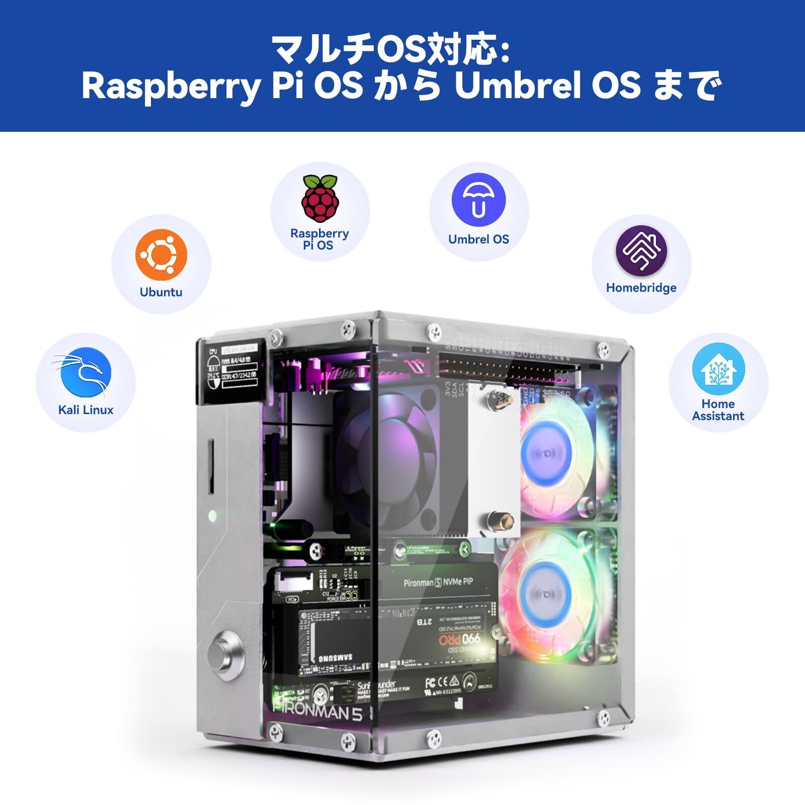 【特価セール】Raspberry Pi 5 用 Pironman 5 NVMe M.2 SSD PCIe ミニ PC ケース Hailo-8L AI アクセラレーター搭載 タワークーラー+デュアル RGB ファン、0.96インチ OLED モジュール、安全シャットダウン、標準 HDMI、RGB エフェクト、スタイリッシュデザイン、オンラインチュートリアル(日本語)