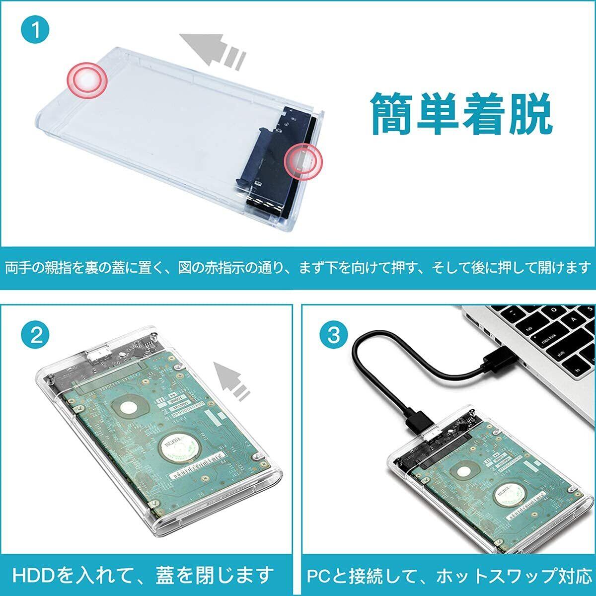 【新着商品】YFFSFDC Type-C 2.5インチ HDD/SSDケース USB3.1 Gen1 ドライブケース SATA III 外付けハードディスク 6Gbps 高速データ転送 UASP対応 透明シリーズ ポータブル SSD ドライブ ケース SATA USB 変換ボックス ネジ&工具不要 簡単着脱 Mac Windows Linux PS4 PS3 XBox HDTV等対応