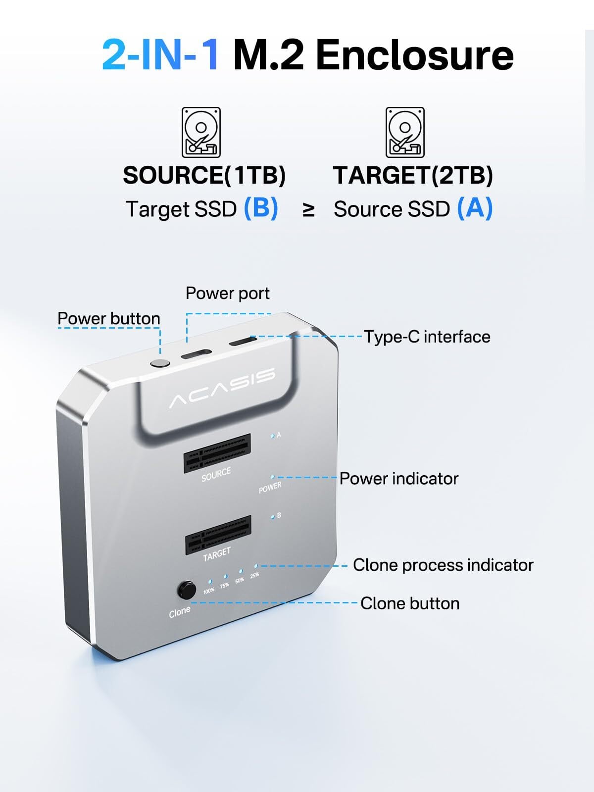 【人気商品】ACASIS M.2 SSD クローン, SSD クローン USB Type C 10Gbps, 支援オフラインクローン, m .2 nvme ssdに適合 2230,2242,2260,2280,最大8TB SSD 対応 (M03)