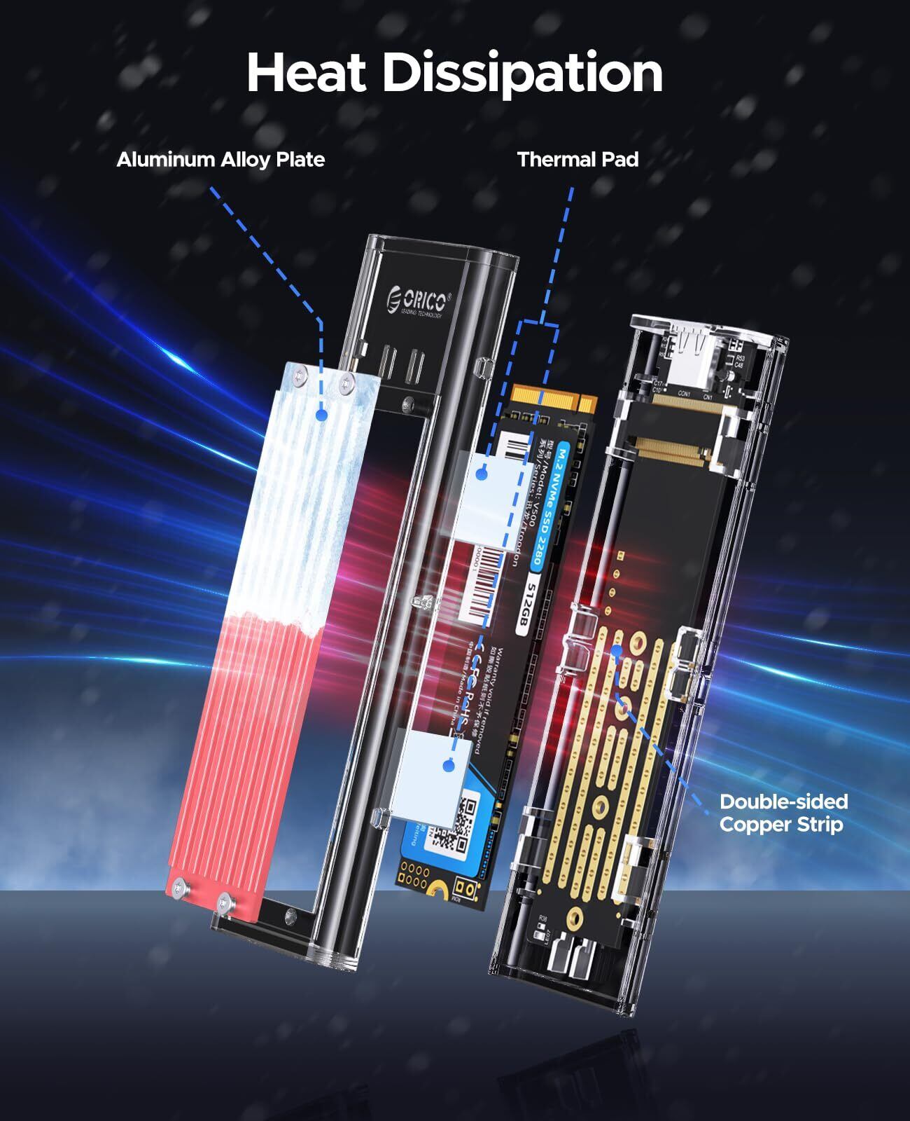 【新春セール】【10Gbps】 ORICO M.2 NVMe SSDケース M-Key / B&M Key(Nvmeのみ) USB3.2 Gen2 10Gbps 外付けケース UASP Trim 対応 2230/2242/2260/2280 SSD対応 ダブルケーブル付属 M.2 SSD 変換アダプタ 透明 TCM2-RD