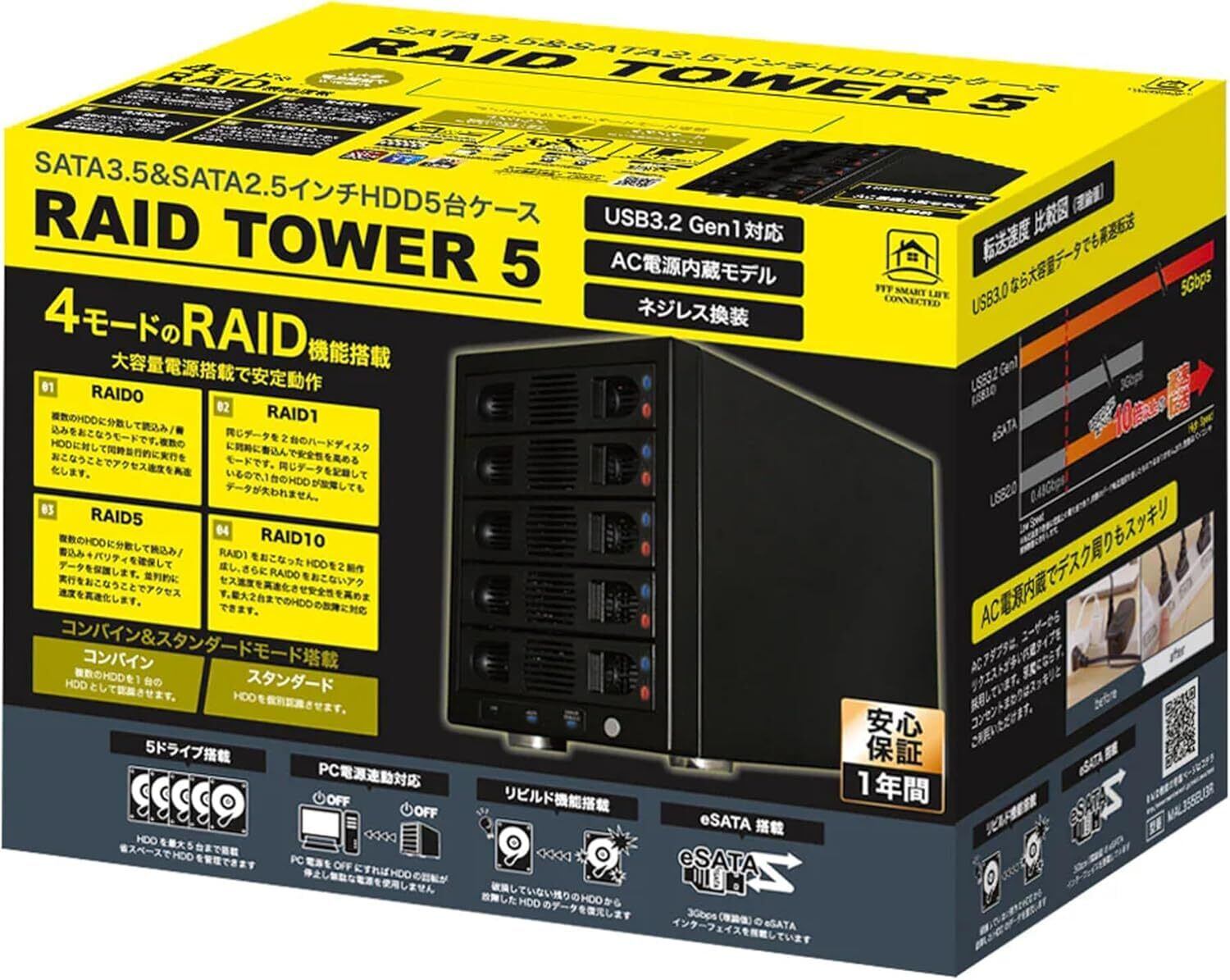 【2022最新】MARSHAL HDD ケース Raid 5bay 3.5インチ ハードディスク5台USB3.2 (Gen1) eSATA RAID機能付 5台収納 MAL355EU3R SATA 150TB 4モールレイド 外付けHDDドライブケース | KURASHILABO