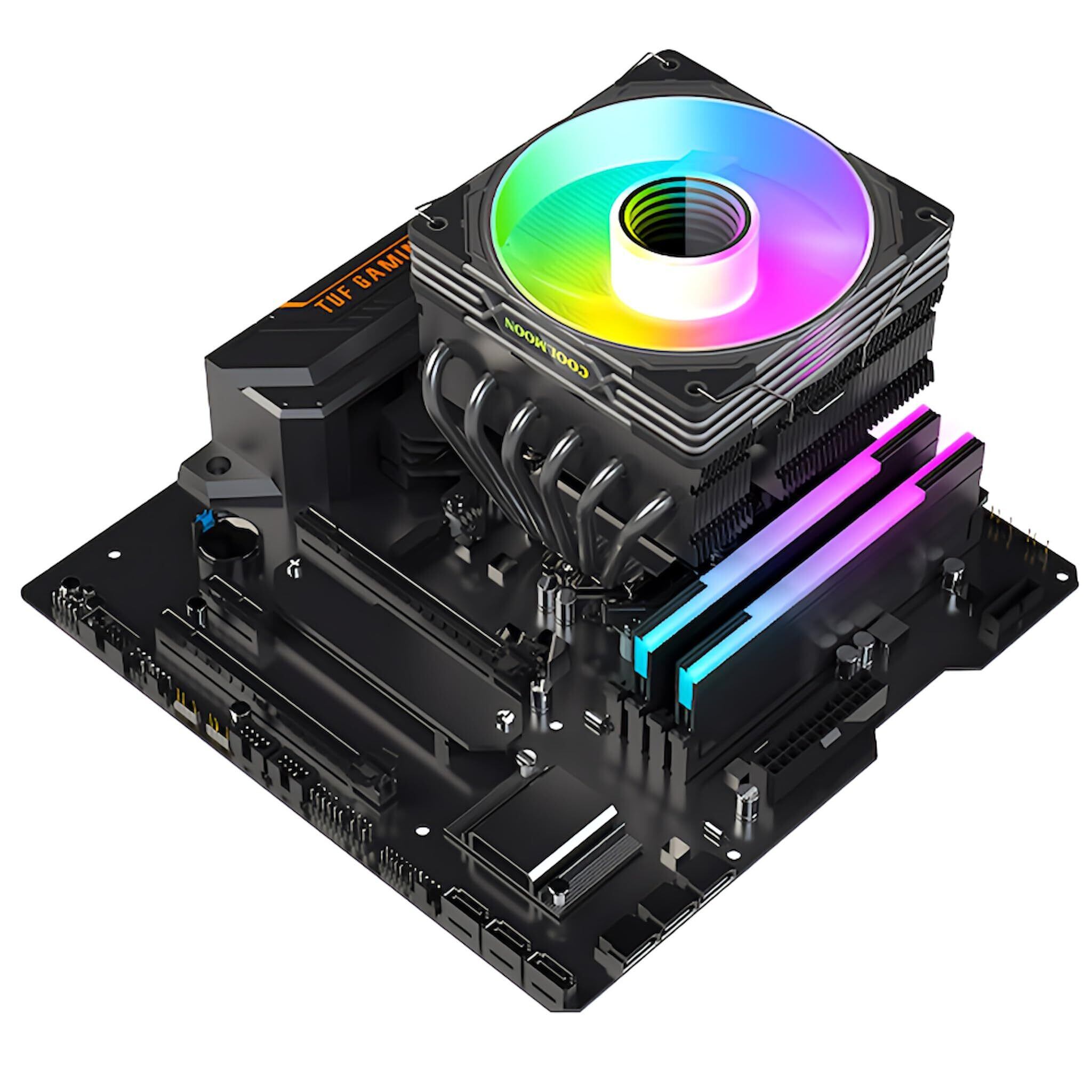 【特価商品】【スモールラボ】COOLMOON CPUクーラートップフロー空冷クーラー 120mm LED ARGB 5v 3pin LGA1700/1200/115X AMD:AM5/AM4ソケットに対応 4pin PWM ファン制御 (ブラック) | KURASHILABO
