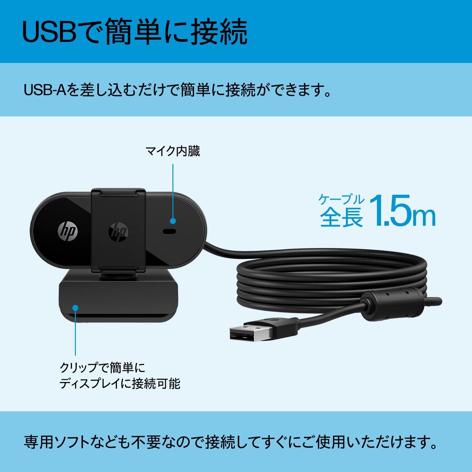 【数量限定】HP Webカメラ 320 フルHD Webcam プライバシーレンズキャップ付き 1080 30fps 視野角66° Chromebook対応 USB Type-A接続 マイク内蔵 ライブカメラインジケーター付き(型番:53X26AA#UUF)【国内正規品】 | KURASHILABO