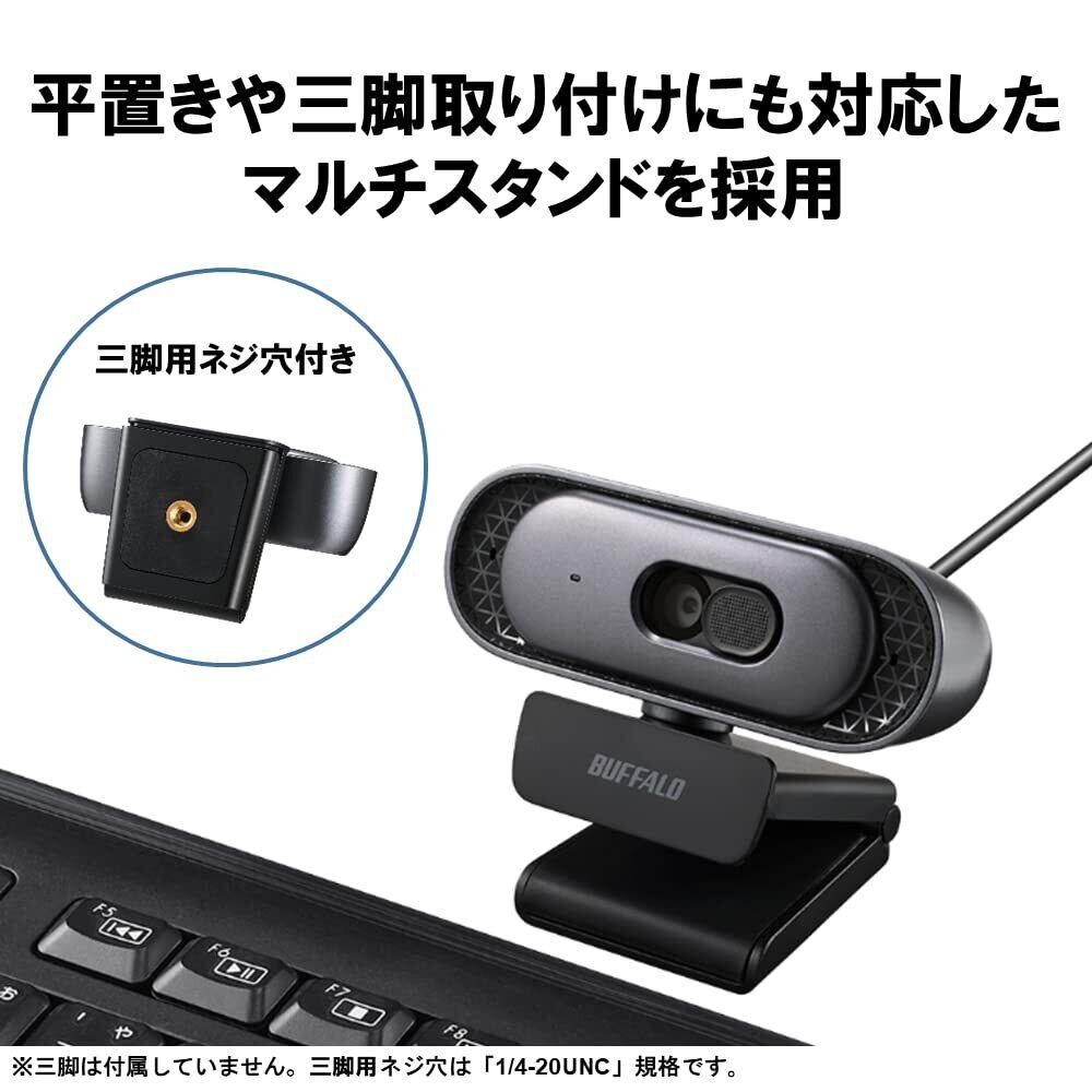 【特価セール】バッファロー WEB カメラ フルHD 1080p 390万画素 Zoom/Slack/Microsoft Teams メーカー動作確認済 PC/Windows/Mac 対応 オートフォーカス ステレオマイク 内蔵 三脚穴 BSW705MBK | KURASHILABO