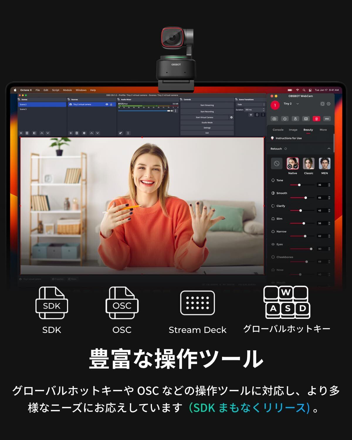 【新着商品】OBSBOT TINY 2 webカメラ AI自動追跡 ウェブカメラ HDR 4K 5000万画素 全画素AF ジェスチャー 音声制御 ノイキャンマイク 会議 ライブ配信 ビデオ通話 PC Mac Windows | KURASHILABO