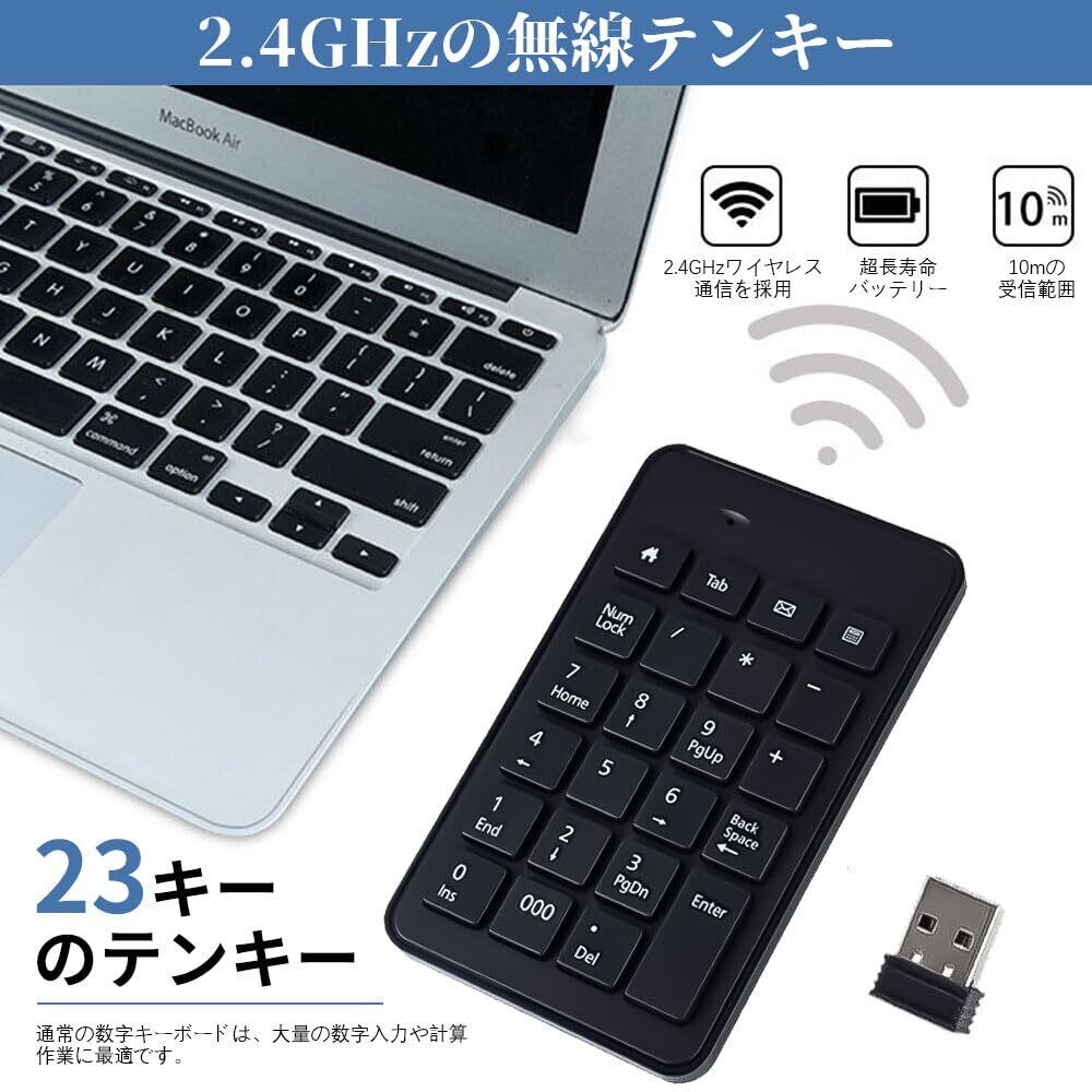 【在庫セール】YFFSFDC USB-A テンキー2.4G テンキー ワイヤレス レシーバー付属 薄型 Tabキー付き 無線 ナンバーパッド 数字キーボード Windows/iOS/Android対応 ブラック(Bluetoothではありません)