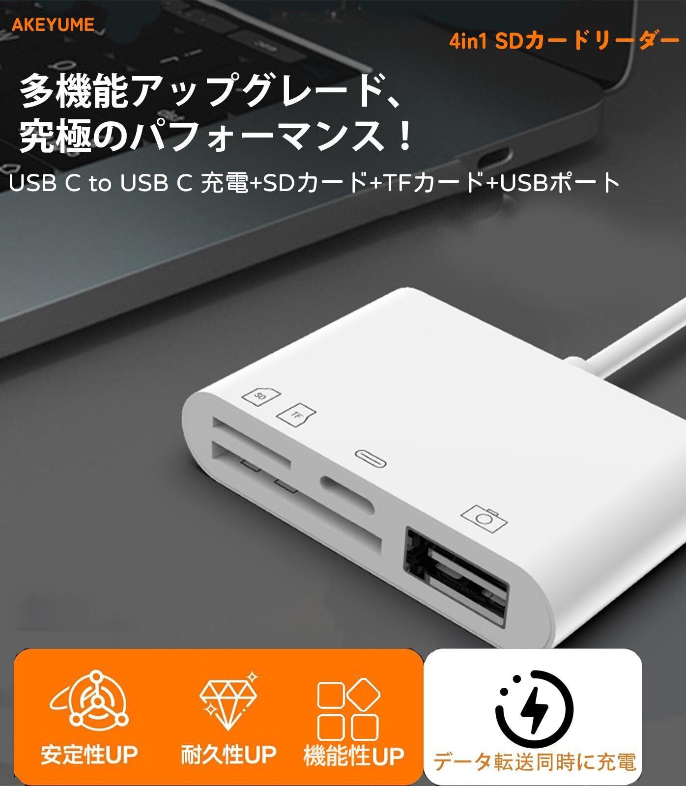 【在庫処分】SDカードリーダー type-c 【2025新登場 4in1 iPhone16適用】 USB3.0 タイプc カードリーダー USB C/SD/TF/USB 変換アダプタ OTG機能 双方向高速データ転送 急速充電 同時 iPhone16/iPhone15/iPad/MacBook/AndroidスマホなどUSB-C機器対応 マルチ 変換アダプタ