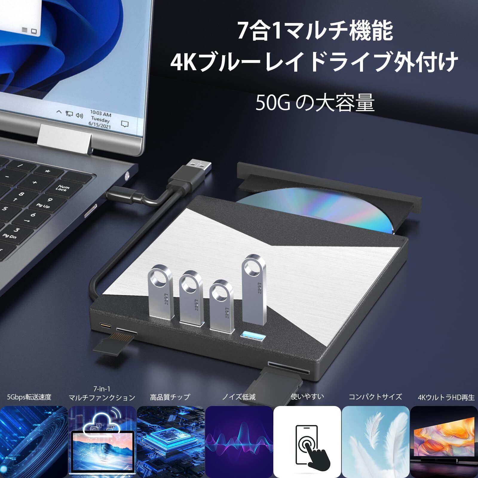 【数量限定】【2025革新版】ブルーレイドライブ外付け 4K UHD再生対応 ブルーレイプレーヤー BD/DVD/CDプレーヤー 再生/読み込み/書き込み対応 高速・静音 USB3.0/Type-C両接続 多機能blu-ray TF/SDカードリーダー付き 高速 読取・書込 外付けbdドライブ ブルーレイプ 軽量 外付けブルーレイドライブ Windows 11 10/8/7/XP Mac対応