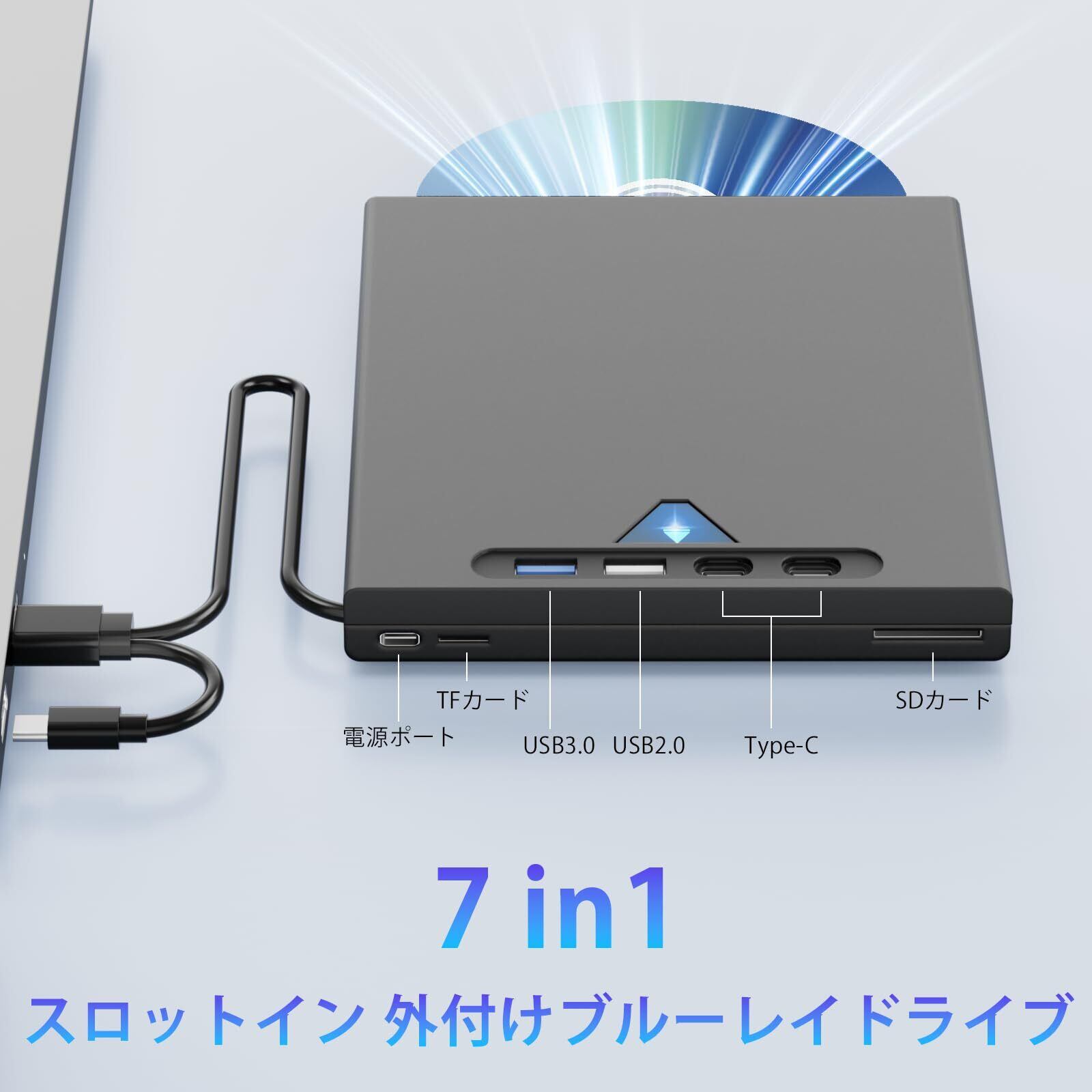 【在庫処分】【2025革新型100GB】ブルーレイドライブ外付け ブルーレイプレーヤー BD/DVD/CDプレーヤー 再生/読み込み/書き込み対応 高速・静音 USB3.0/Type-C両接続 多機能blu-ray TF/SDカードリーダー付き 高速 読取・書込 外付けdvdドライブ ブルーレイプ 軽量 外付けブルーレイドライブ Windows 11 10/8/7/XP Mac対応