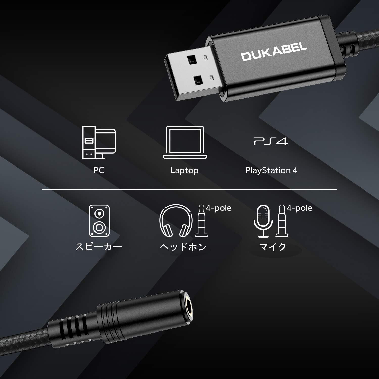 【2022最新】DuKabel 25cm USB外付け サウンドカード オーディオ 変換アダプタ 4極(TRRS)3.5mmミニジャックケーブル USB外付け サウンドカード Windows、Mac OS/X、PS4、Linux、Chromebook、Raspberry Pi等対応