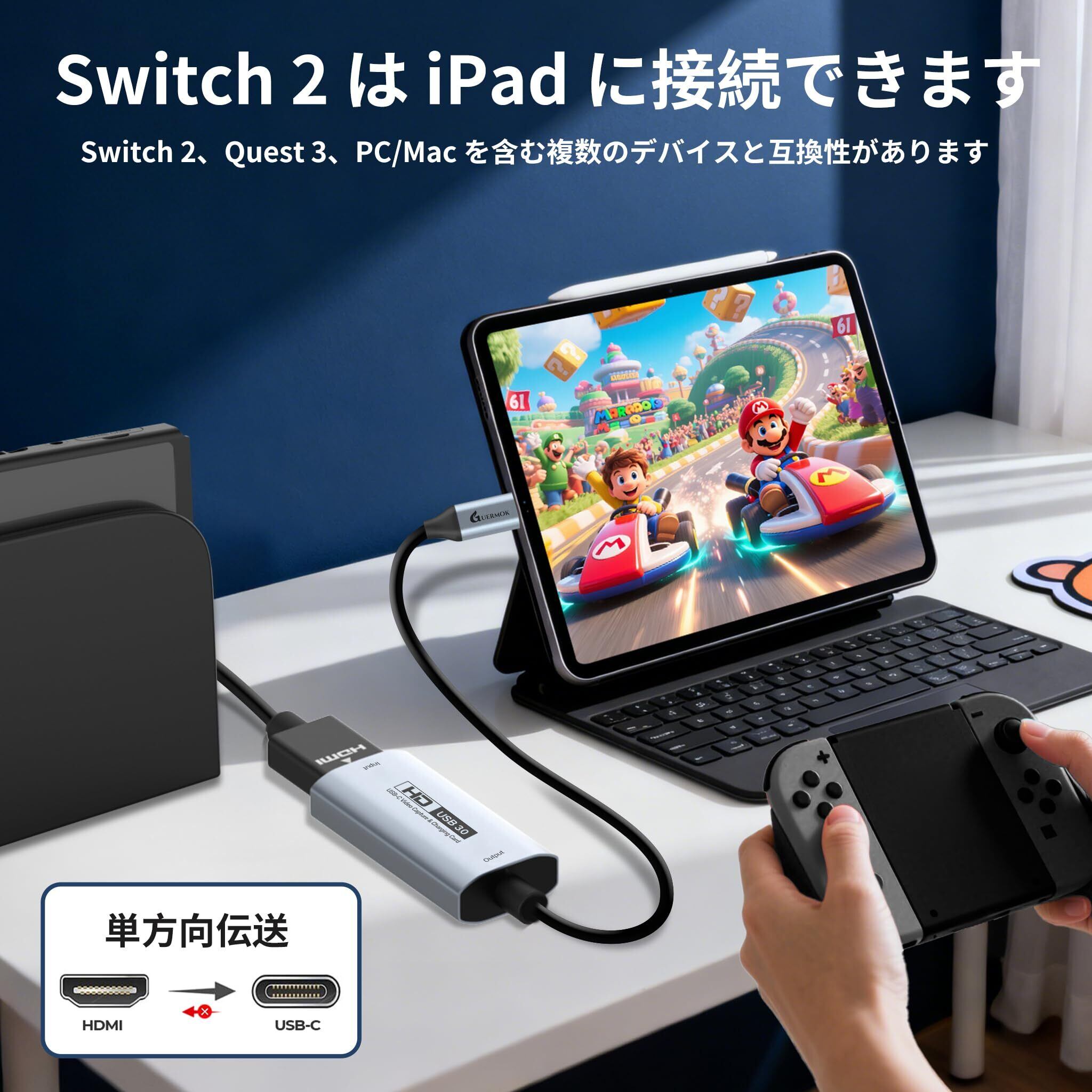 【数量限定】GUERMOK キャプチャーボード USB3.0 HDMI to USB-A/C(PD 100W対応)1080P 60fps録画 Type-Cアダプター付き Switch/PS5/PS4・iPad/Mac/Oculus Quest 3対応 シルバー | KURASHILABO