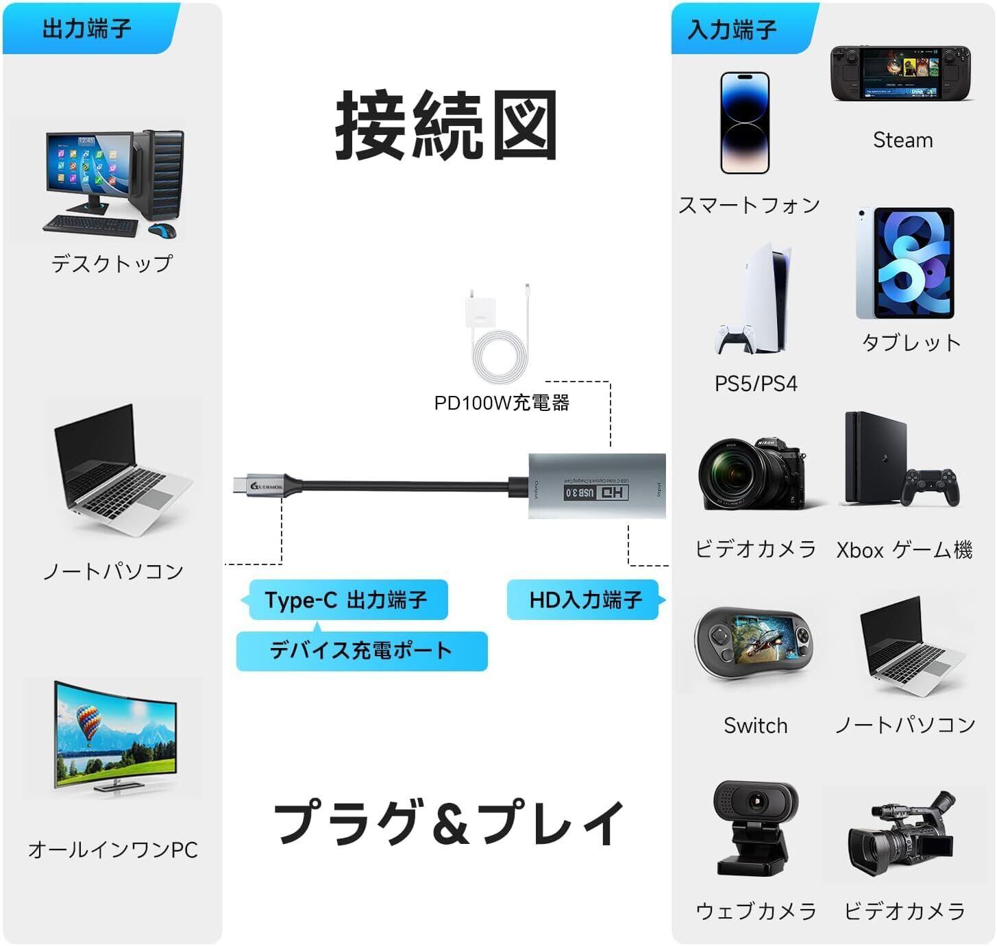 【数量限定】GUERMOK キャプチャーボード USB3.0 HDMI to USB-A/C(PD 100W対応)1080P 60fps録画 Type-Cアダプター付き Switch/PS5/PS4・iPad/Mac/Oculus Quest 3対応 シルバー