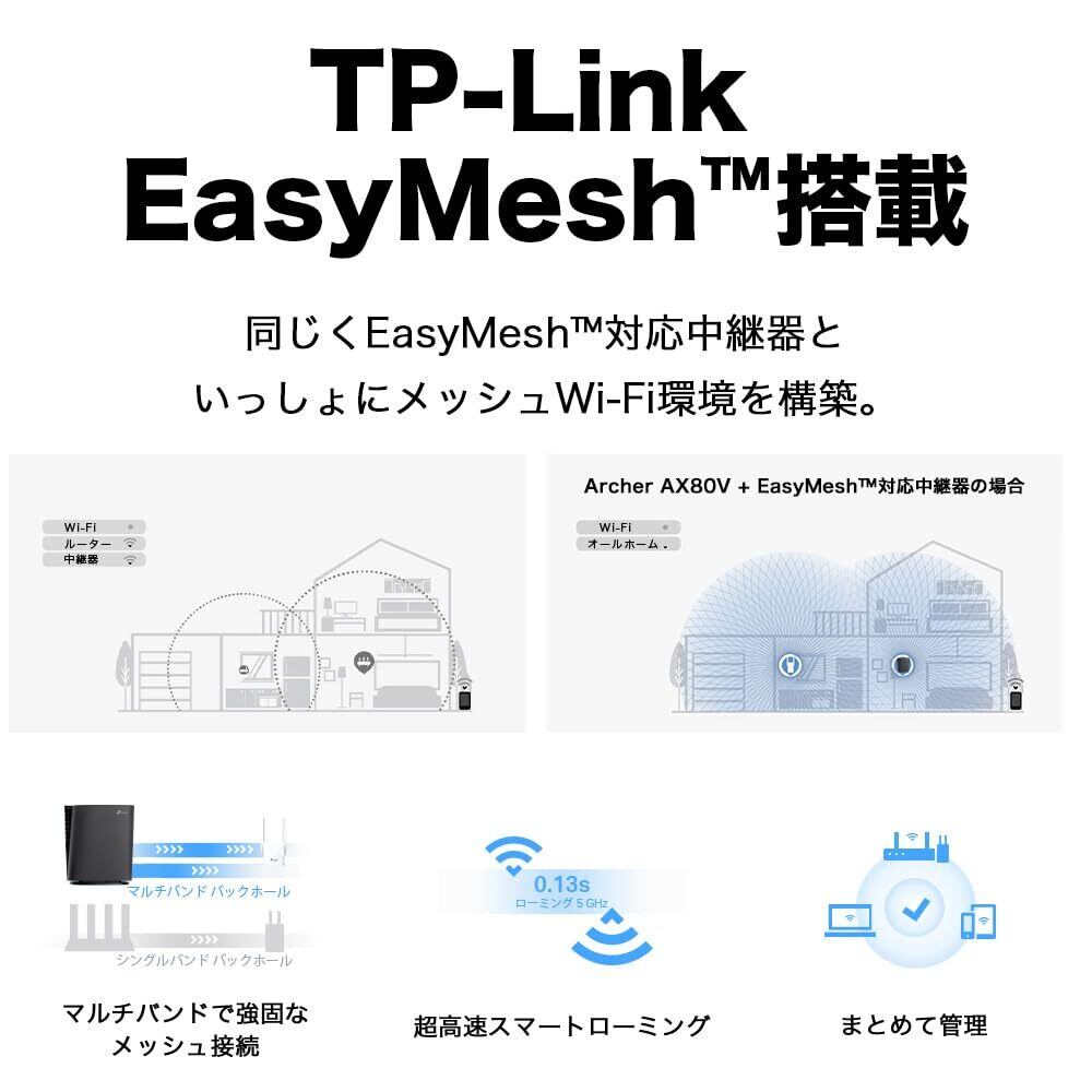 【特価セール】TP-Link WiFi ルーター 無線ルーター 高速 WiFi6 AX6000 2.5Gポート VPN IPv6 IPoE EasyMesh 4804+1148Mbps メーカー3年保証 Archer AX80V 【限定】