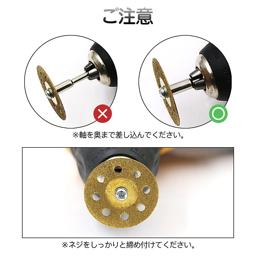 【新春セール】丸穴ミニダイヤモンドカッター 直径22mm 10枚入 2.35mm軸2本+3mm軸2本 ダイヤモンドカッティングディスク ダイヤモンドビットブレードセット 回転式 研磨カッター ミニルーター/リューター/ルーター用 ゴールド | KURASHILABO