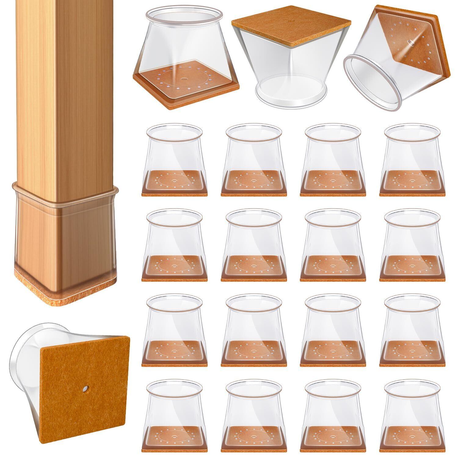 【在庫処分】VIUME 椅子脚カバー 正方形 椅子あしキャップ シリコン クリアー 騒音 きず防止 レフィル付きフェルトシート 角脚用 16個セット 透明-M 適用範囲:19-25.9mm | KURASHILABO