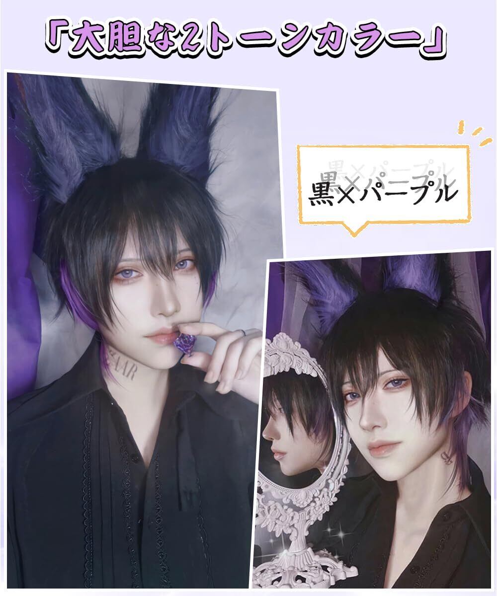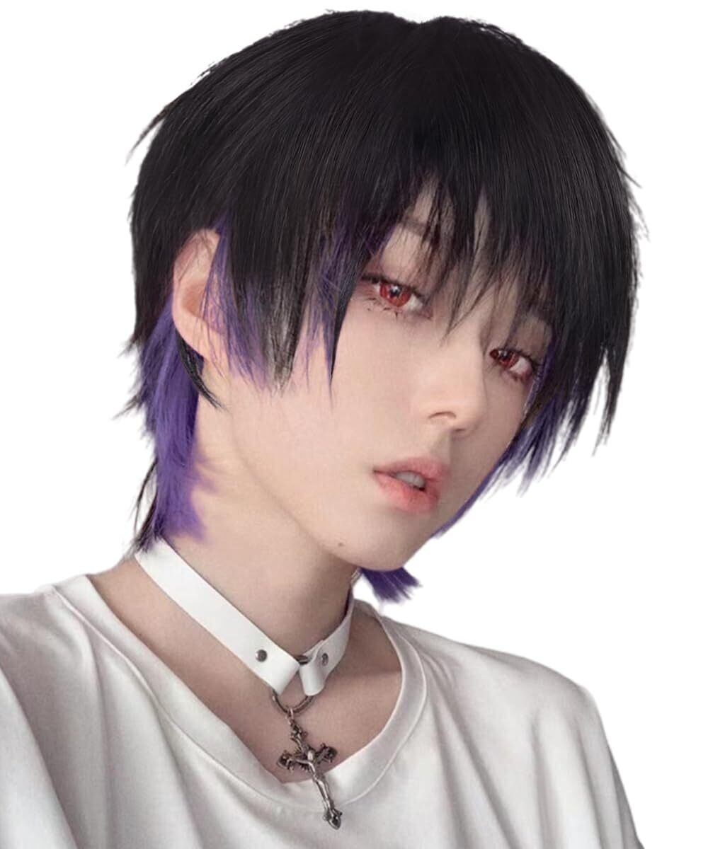 【特価商品】ORSUNCERウィッグ メンズ ウルフ インナーカラー 紫 パープル 黒 ショート かつら フルウィッグ 男性 イメチェン 変装 人気 ファッション ネット付き | KURASHILABO