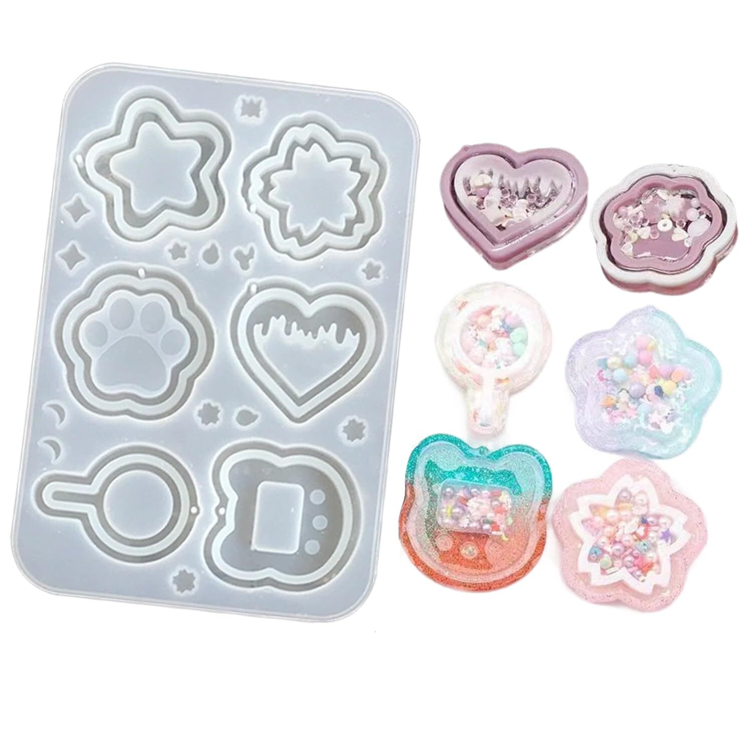 【新春セール】レジンモールド シャカシャカ流砂型シリコンモールド ハート型フラワースター ネコツメクマ uvレジン型ホログラム シェイカーモールド DIY手作りキーホルダーペンダント アクセサリー デコレーションツール | KURASHILABO