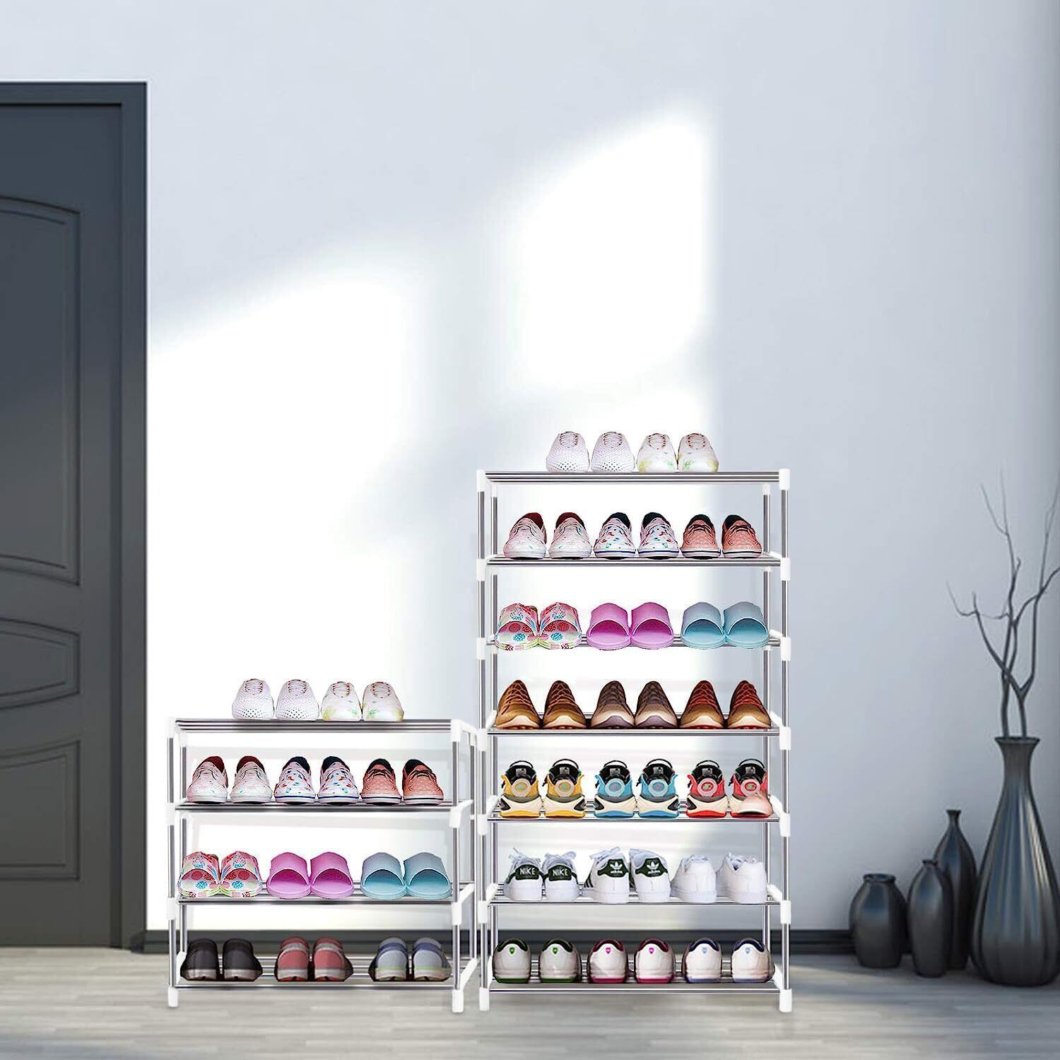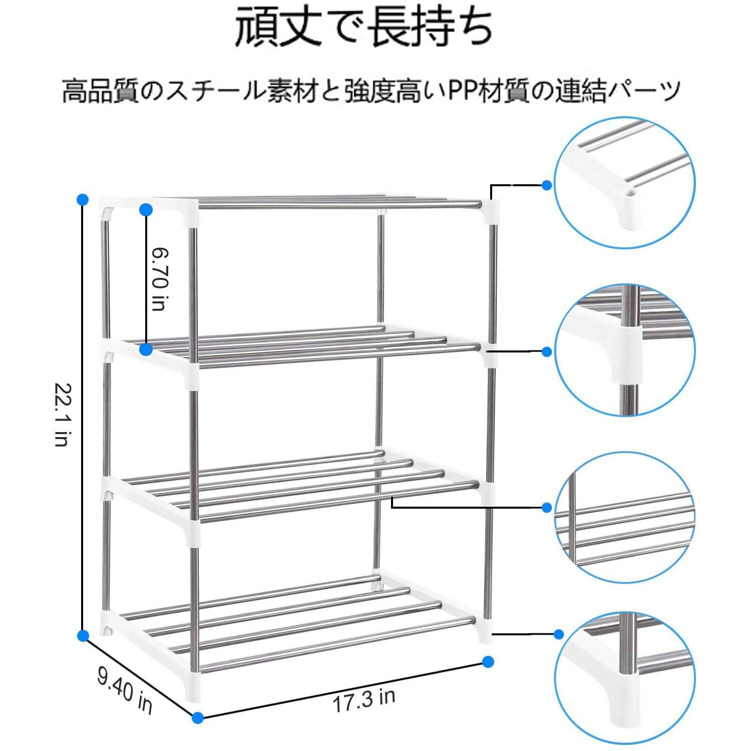 【新春セール】ETAOLINE シューズラック 大量 組み立て式 靴下駄箱 省スペース シューズボックス スリム 玄関収納 靴入れ 棚 (4段, ホワイト)