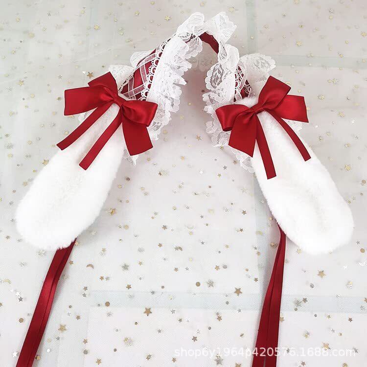 【特価商品】カチューシャ ヘッドドレス うさぎ 耳 髪飾り ロリータ うさ耳 コスプレ リボン (レッド) | KURASHILABO