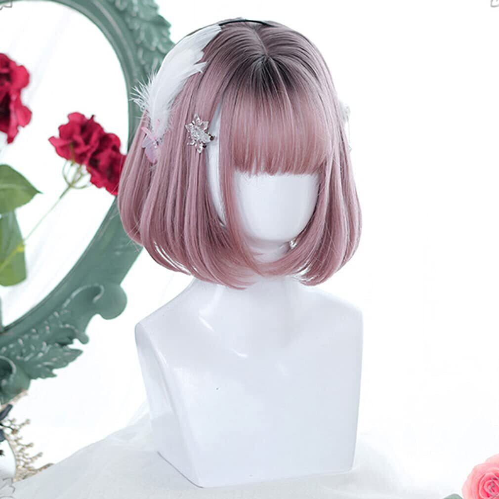 【人気商品】ウィッグ ロリータ 原宿風 GAL系 ゴスロリ コスプレ カツラ 耐熱 ボブ (黒 青 ピンク) メッシュ ゴシック ロング 森ガール ゆめかわいい お姫 小顔 パーティー ハロウィン 仮装 日常 かつら wig (ブラウン×ピンク) | KURASHILABO