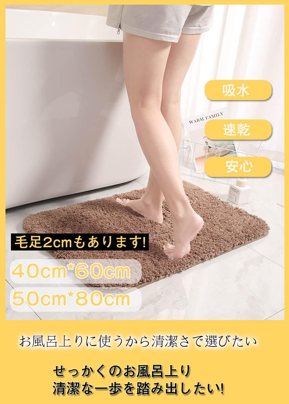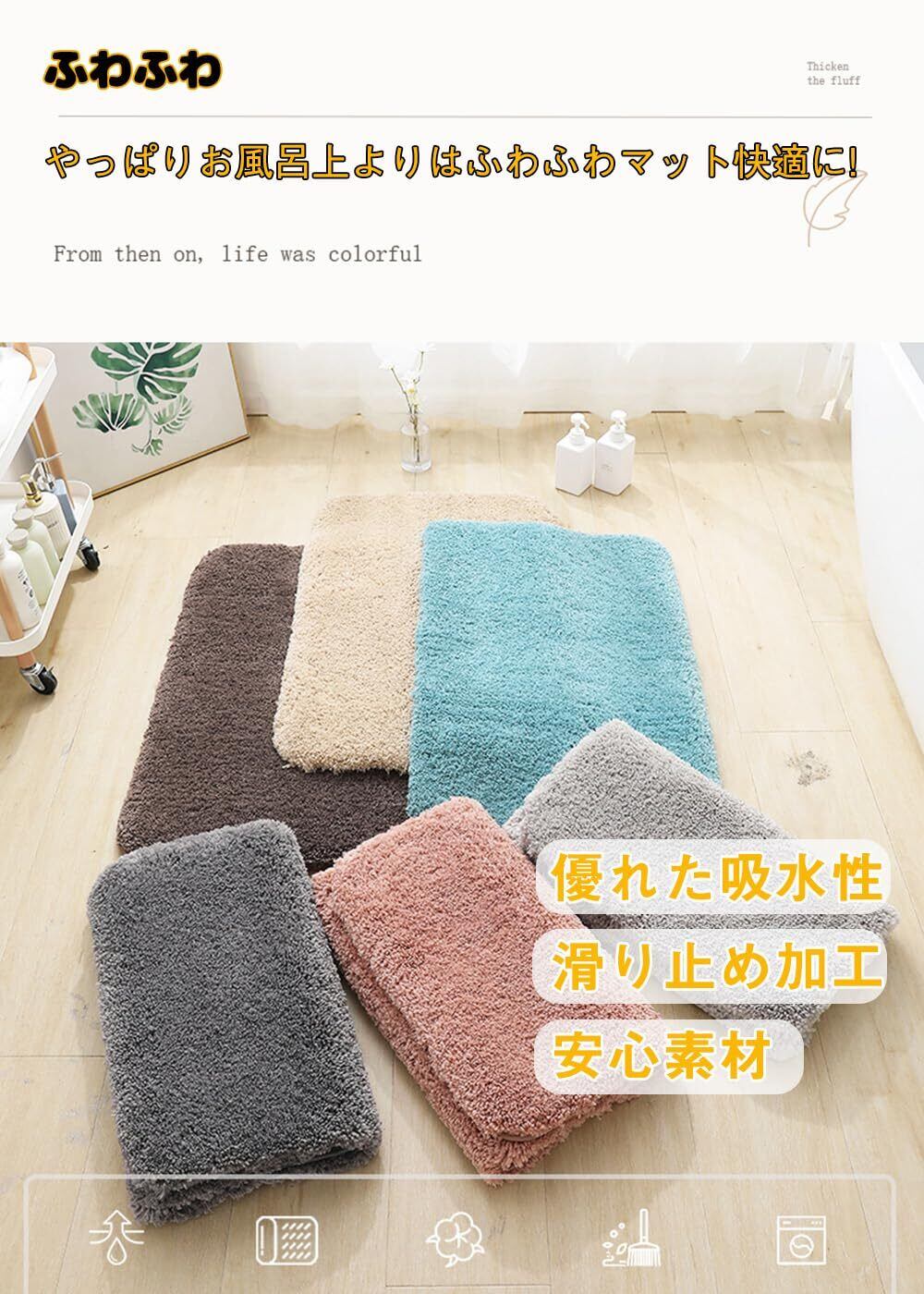 【新春セール】バスマット 速乾 洗える 足拭きお風呂まっと ふわふわ ファション 人気 滑り止め 室内 浴室 大判 バス 大きめ 40*60cm グレー