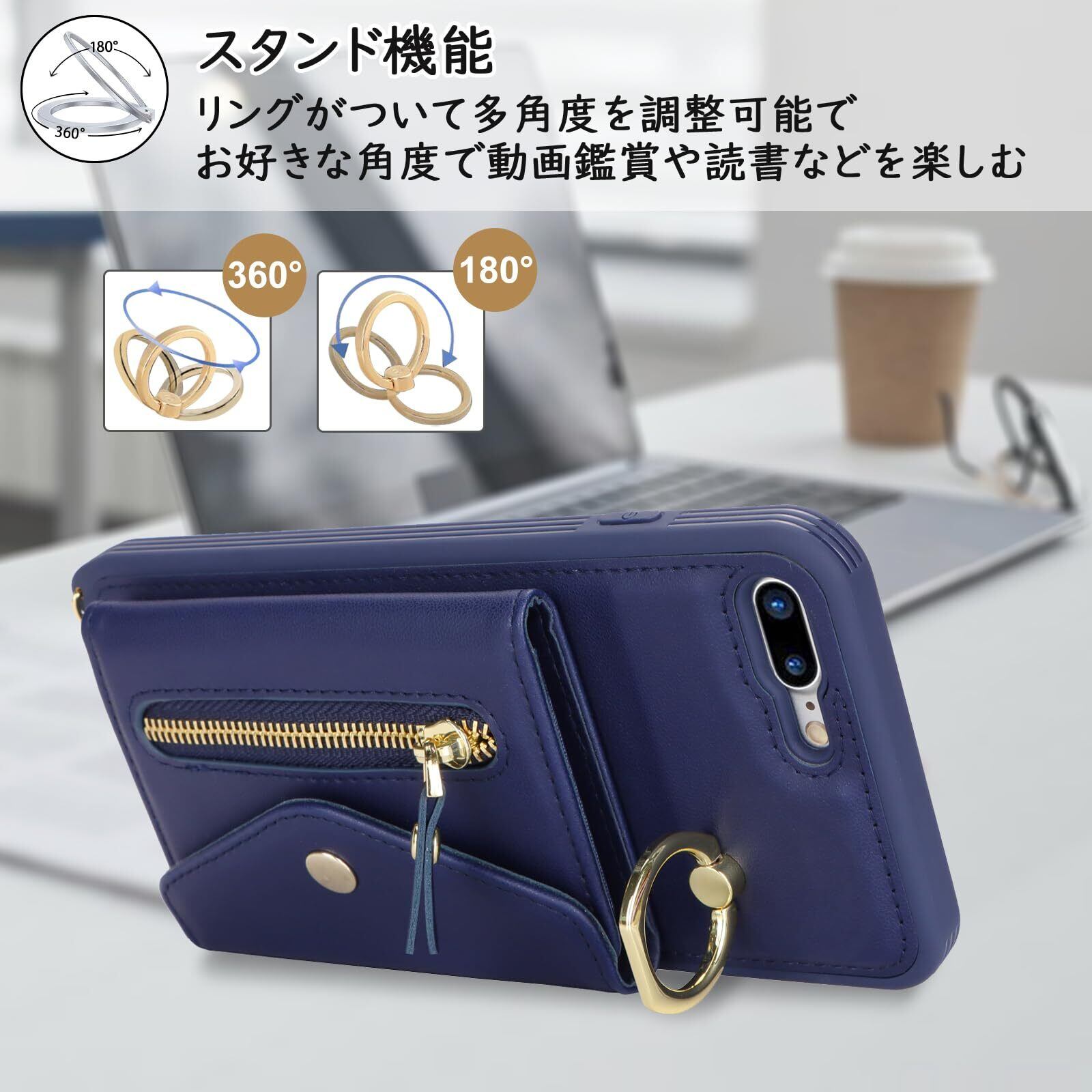 【新春セール】【Hamany】 対応 iPhone 8 plus ケース スマホ ショルダー iphone 7 plus ケース 手帳型 ショルダー おしゃれ カード収納 大容量 背面 リング付き スタンド機能 アイフォン8プラス ケース 耐衝撃 耐久性 女性 肩がけ 首掛け 斜め掛け ストラップ付き 長さ調整可能 カバー -ブルー