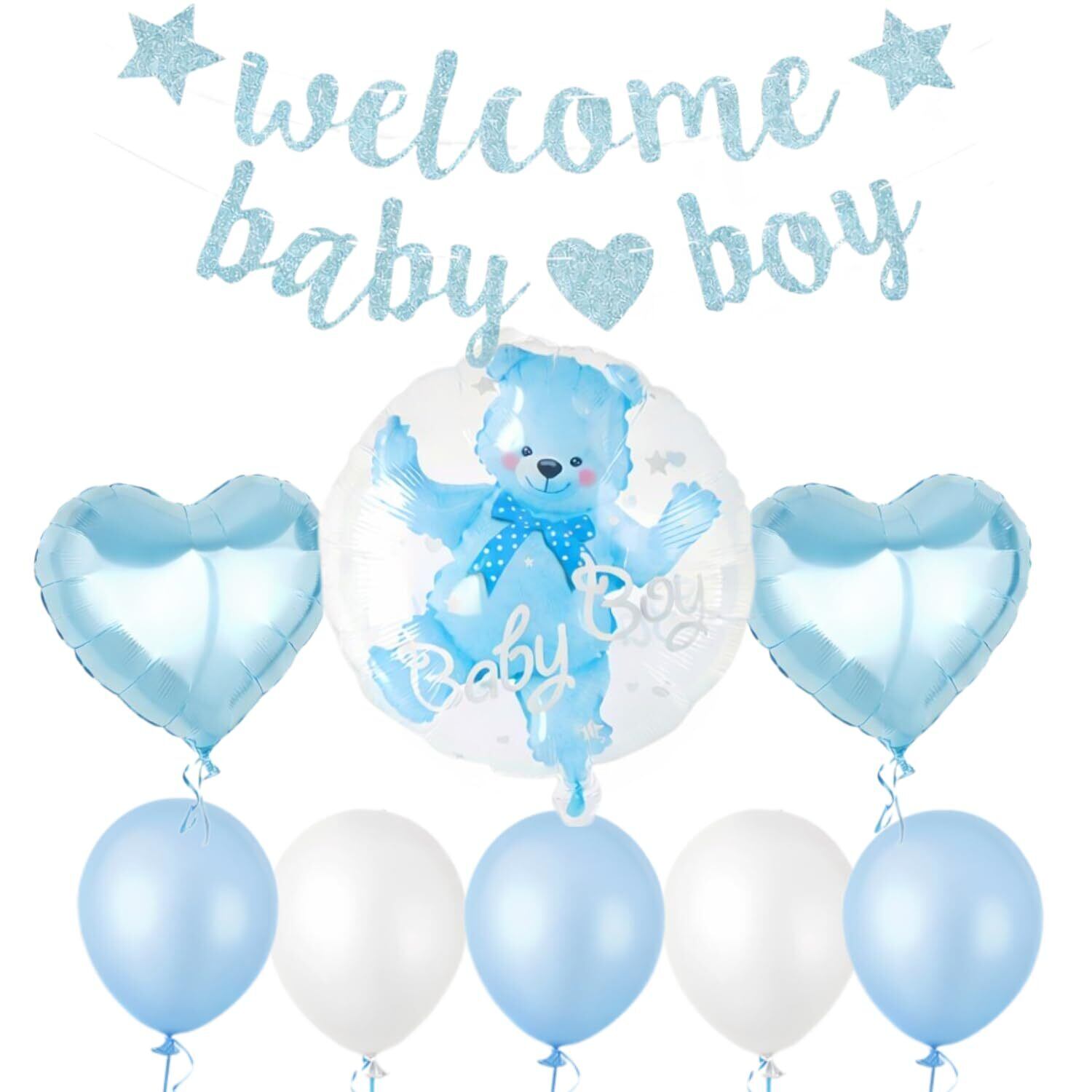 【特価セール】Lumierechat ベビーシャワー 飾り 飾りつけ 装飾 バルーン ガーランド ピンク ブルー 男の子 女の子 クマ a-b3632(Welcome Boy) | KURASHILABO