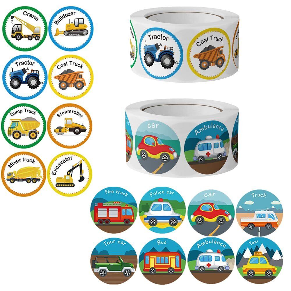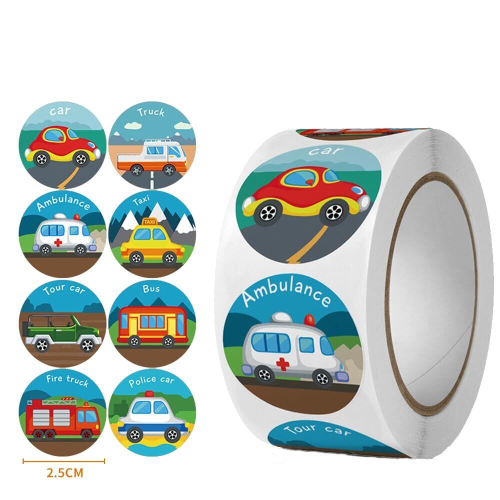 【数量限定】ごほうびシール 車 1000枚入り 2巻 ご褒美シール よくできましたシール 教師褒美用 シール 英語 トイレトレーニング シール止め付き 直径25mm
