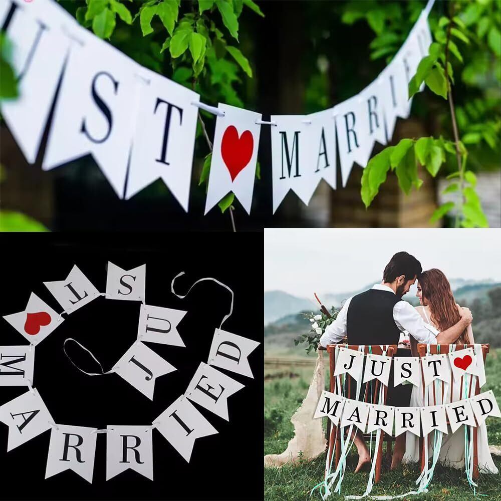 【新着商品】LIKENNY 結婚式用ガーランド 3点セット Happy Wedding/Just Married/Love 3種類 ウェルカムスペース 装飾 誕生日 壁飾り 記念日 受付 前撮り 会場飾り パーティー お祝いに最適な結婚式小物 (リボン付き)