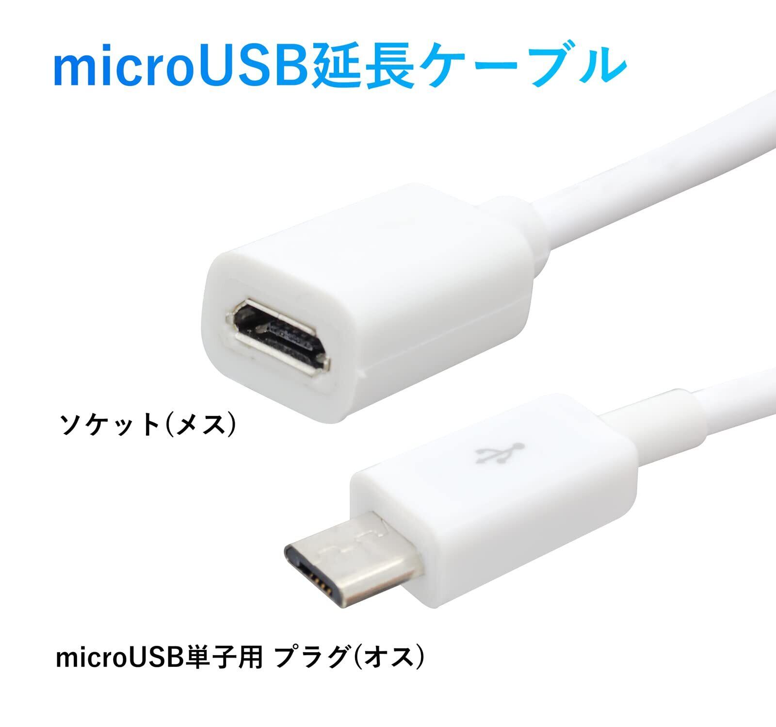 【数量限定】オーディオファン microUSB 延長ケーブル micro-B オス - micro-B メス 充電 データ転送対応 短い 約10cm ホワイト