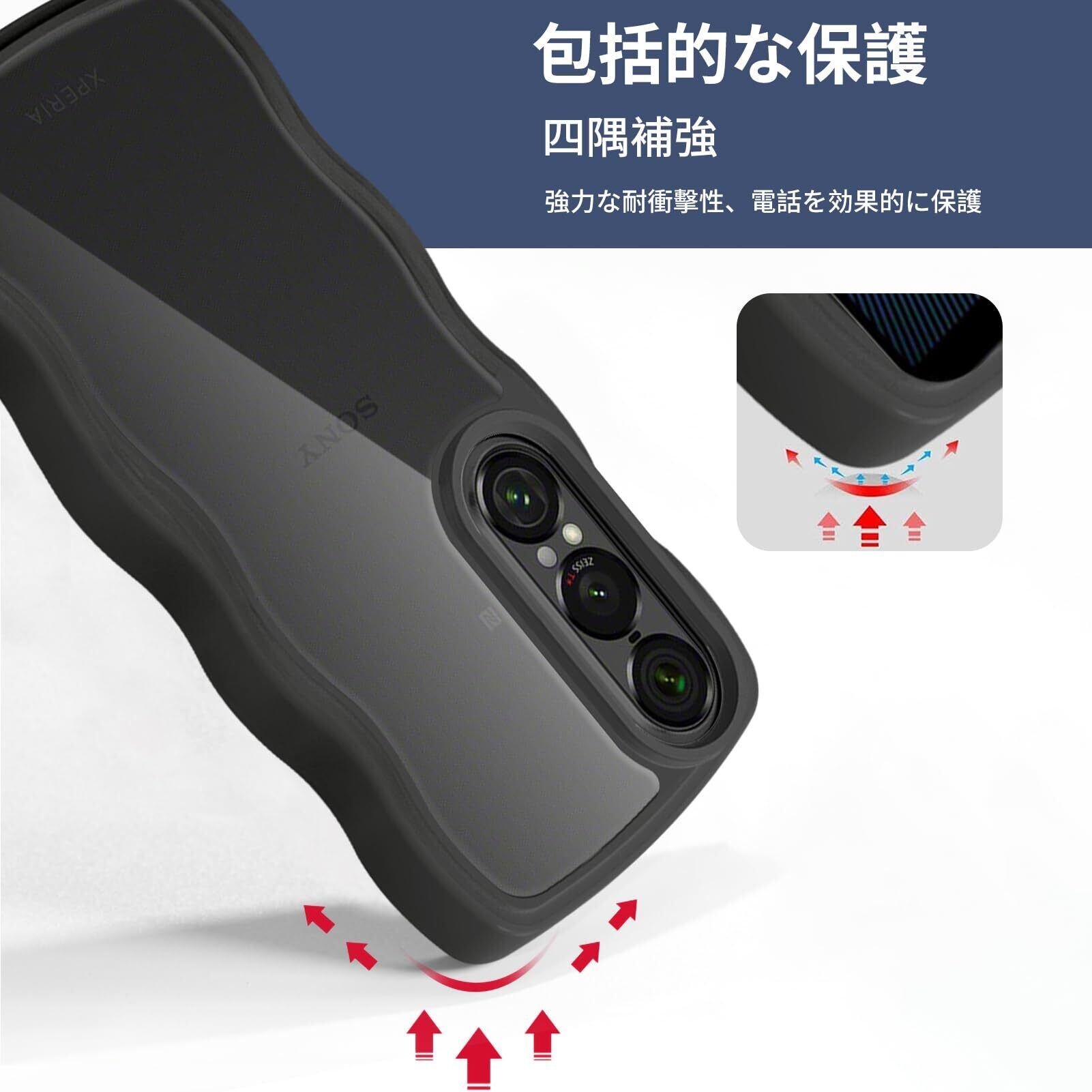 【在庫セール】Xperia 1 VII ケース/SO-51F ケース クリア 全面保護 スマホケース 人気 かわいい エクスペリア 1 VII カバー 透明 耐衝撃 滑り止め 薄型 軽量 TPU レンズ保護 おしゃれ 落下防止 ワイヤレス充電対応(ブラック)