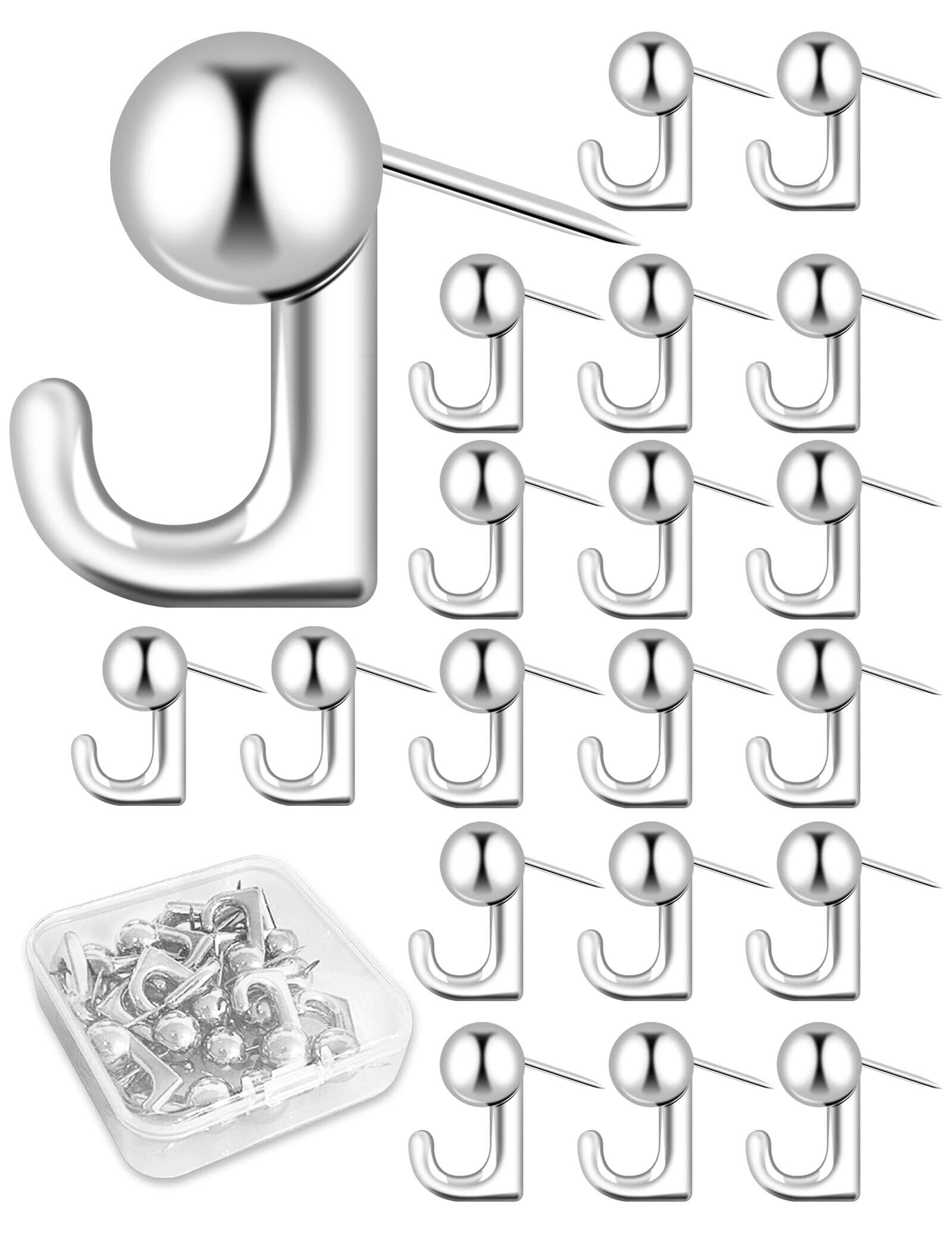 【2022最新】20個入 画鋲 フック おしゃれ ピンフック 目立たない 石膏ボード フック 跡が残らない 釘フック 壁 傷つけない 耐荷重約5kg 銀 金属 錆びない 額縁/時計/絵画/クリスマス 飾り用/カレンダー/鍵/写真/自宅/オフィス/キッチン/学習室/浴室用など