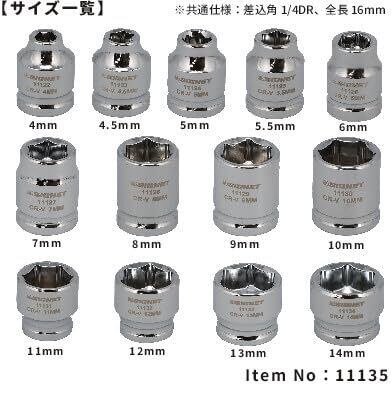 【在庫セール】SIGNET(シグネット) 11135 1/4DR 13PC ショートソケットセット(6角) 11135 | KURASHILABO
