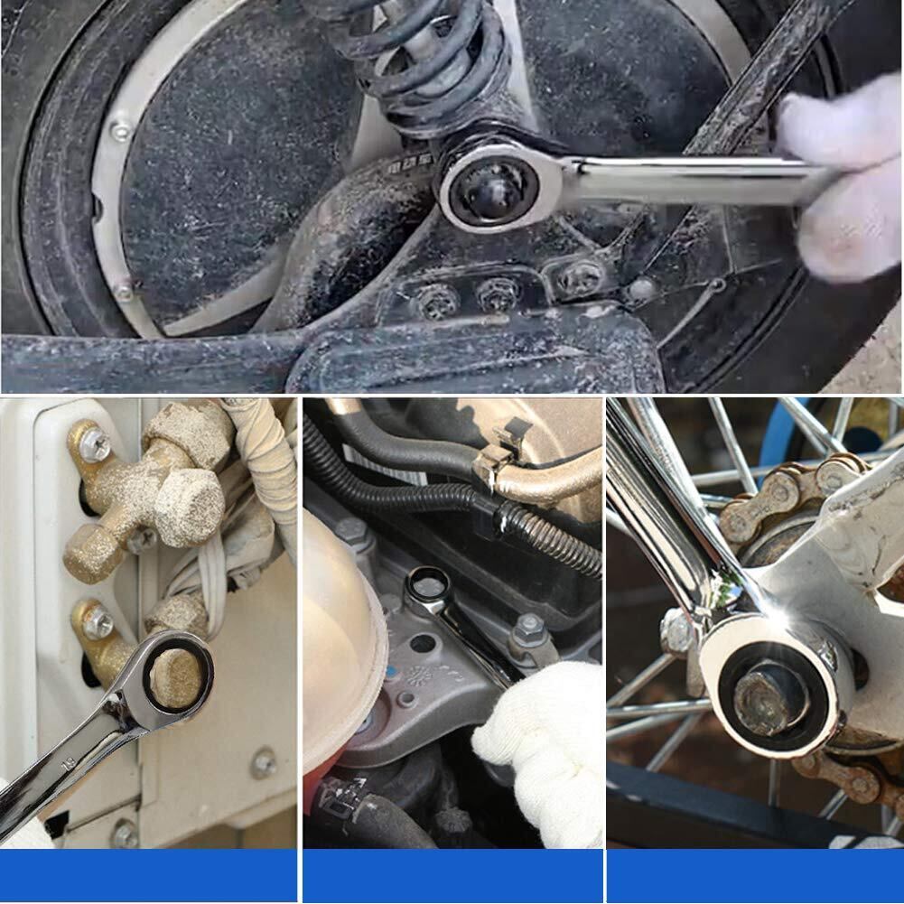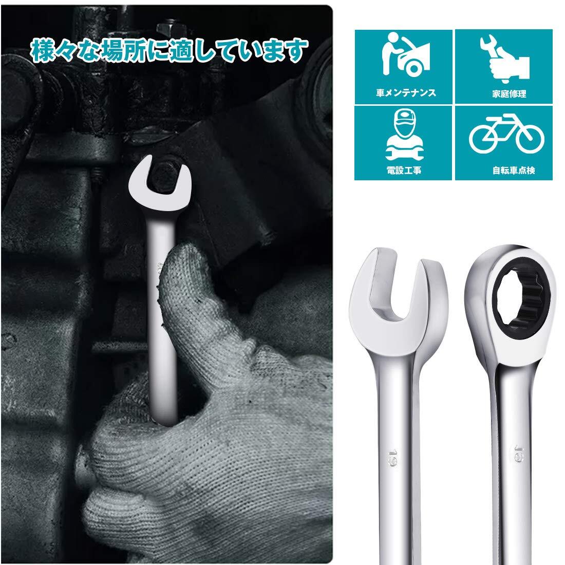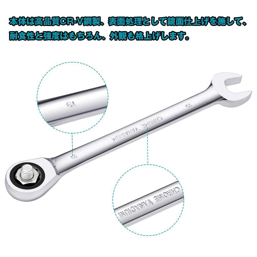 【特価商品】ラチェットレンチ 8本組 コンビネーションレンチセット 両用ヘッド スパナ ラチェットコンビセット CRV製 車メンテナンス 組み立て 車載工具 収納袋付