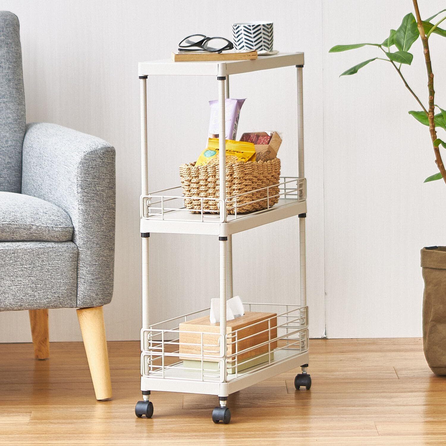 【新春セール】ドウシシャ サイドテーブル キッチンワゴン ランドリーワゴン キャスター付き スリム 灰 グレー 3段 幅20cm×奥行45cm×高さ74.5cm CPS4520-GY マットな質感 オシャレ 可愛い 可動棚板 着脱簡単 落下防止柵付き 天板 デスク下 | KURASHILABO