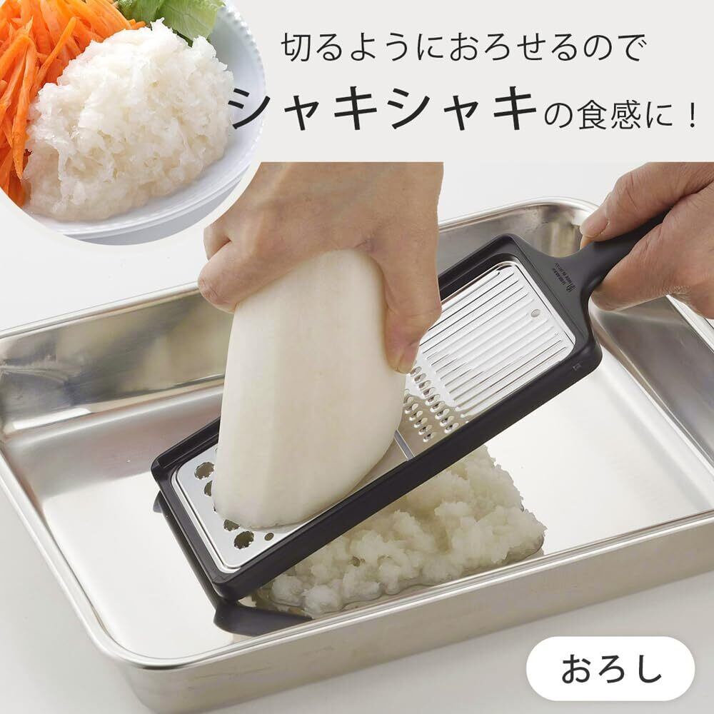 【数量限定】下村企販 スライサー ツマ切り おろし 【日本製】 ステンレス刃 両面使い分け 2way 時短 野菜 スライス 野菜カッター ブラック 和食屋さん 燕三条 45533 | KURASHILABO